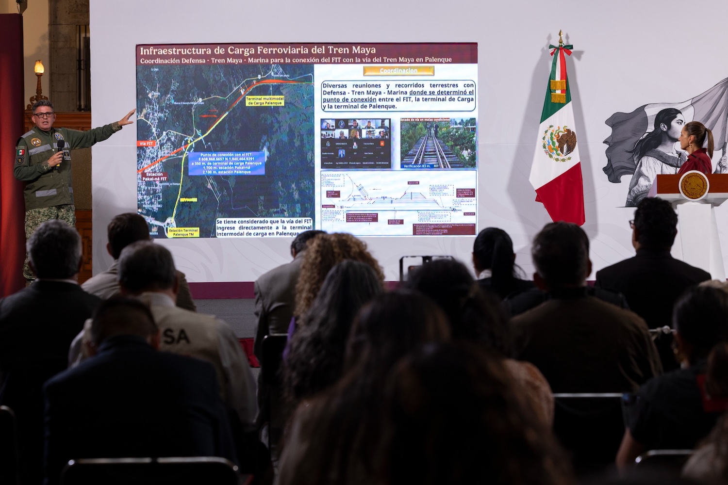 Aseveró que en los trabajos para la construcción de las vías férreas se trabaja de manera coordinada con diferentes dependencias, desde la SICT; la Secretaría de la Defensa Nacional; la Secretaría de Desarrollo Agrario, Territorial y Urbano (Sedatu); la Secretaría de Medio Ambiente y Recursos Naturales (Semarnat); la Secretaría de Bienestar; la Comisión Nacional del Agua (Conagua); la Comisión Nacional de Áreas Naturales Protegidas (Conanp); el Instituto Nacional de Antropología e Historia (INAH); el Instituto Nacional de los Pueblos Indígenas (INPI), así como con gobiernos estatales y municipales.