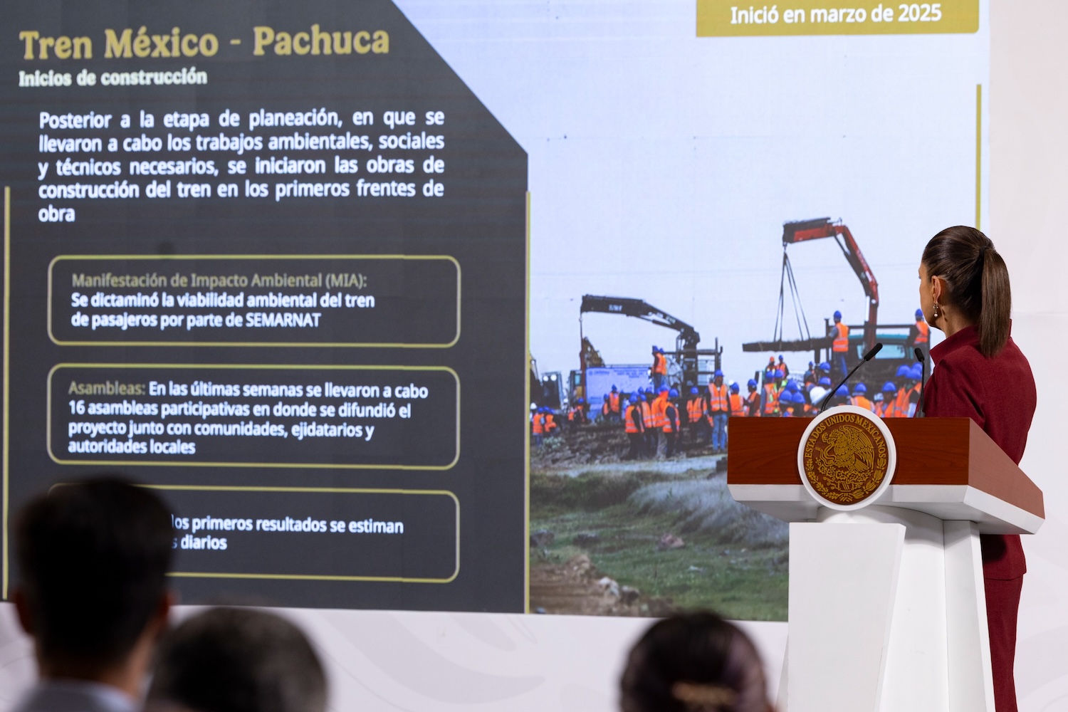 Sobre el tramo Ciudad de México-Querétaro, destacó que se tiene la ingeniería básica suficiente para iniciar obras en esta quincena para 226 km de vía férrea a construir; mientras que en los tramos Querétaro-Irapuato y Saltillo- Nuevo Laredo, la ingeniería básica se entregará el 25 de abril. Añadió que en cada uno de los proyectos se han realizado asambleas informativas en los municipios donde se recorren los ejidos de los tramos por donde pasará el tren con la finalidad de hacer un proceso plural e informativo.