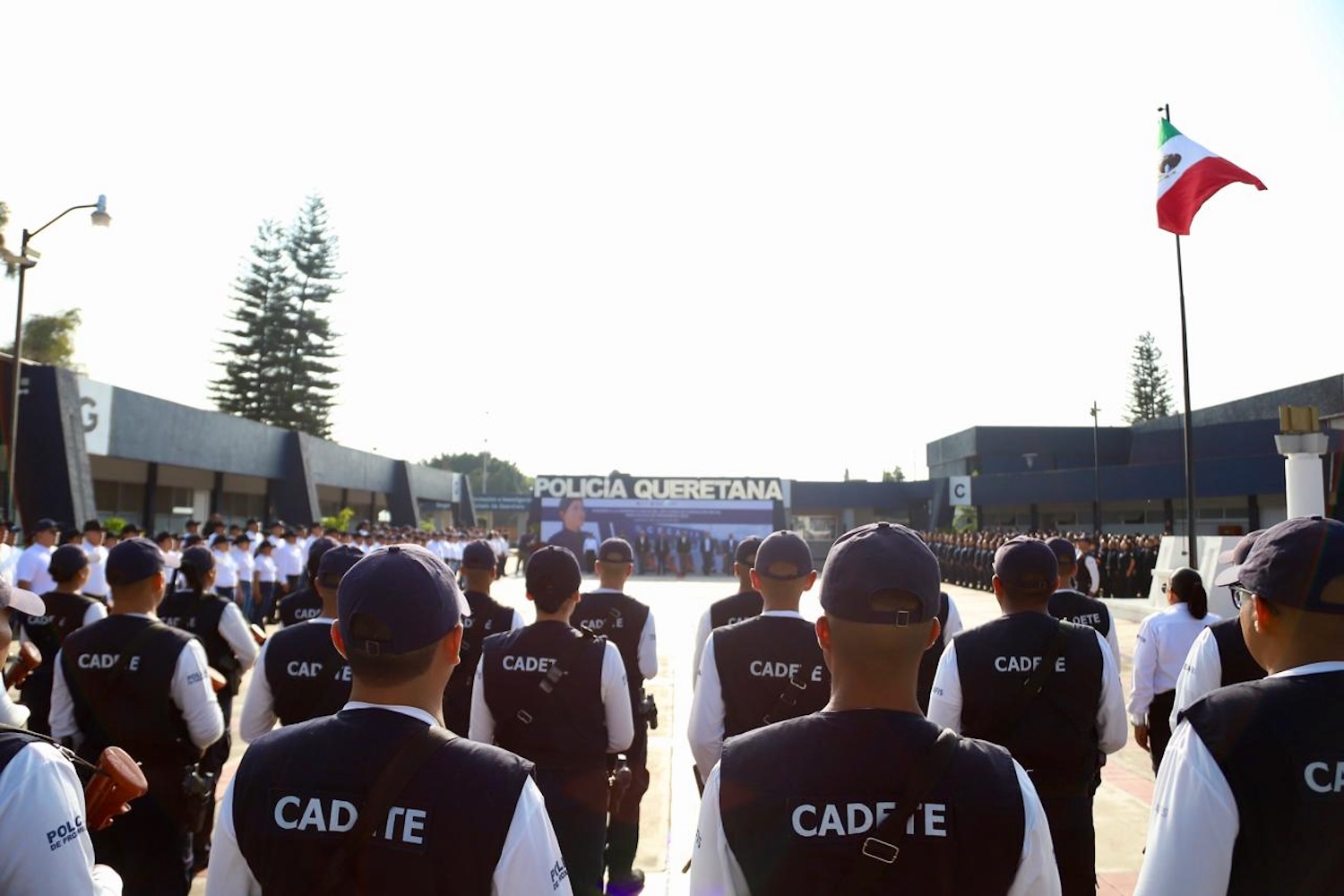 Durante la ceremonia mensual de honores a la bandera, el director del Cecafis, Alberto Luna López, dirigió un mensaje de bienvenida a los cadetes que durante los próximos cinco meses cursarán las mil 230 horas del programa académico, diseñado bajo un enfoque teórico-práctico y alineado al Modelo de Policía de Proximidad Queretana.
