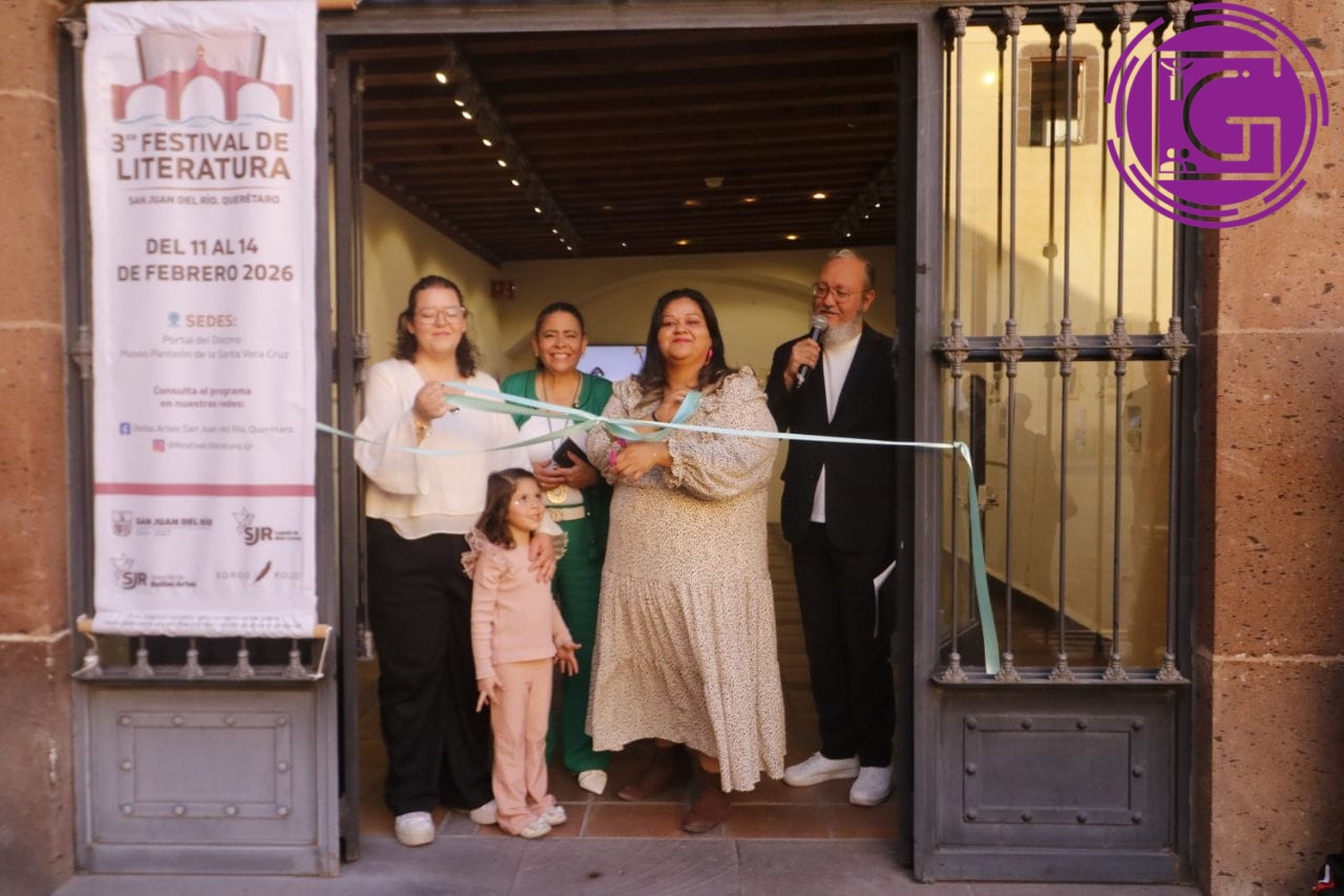 Durante el primer día de actividades del “Tercer Festival de Literatura San Juan del Río 2026”, además de la declaración oficial de inicio de este evento, fueron inauguradas la exposición “Los Hilos de Mi Memoria”, de Maggie Loredo, y el recital “Flor y Corona: Voces Poéticas de los Juegos Florales de San Juan del Río, Querétaro”.