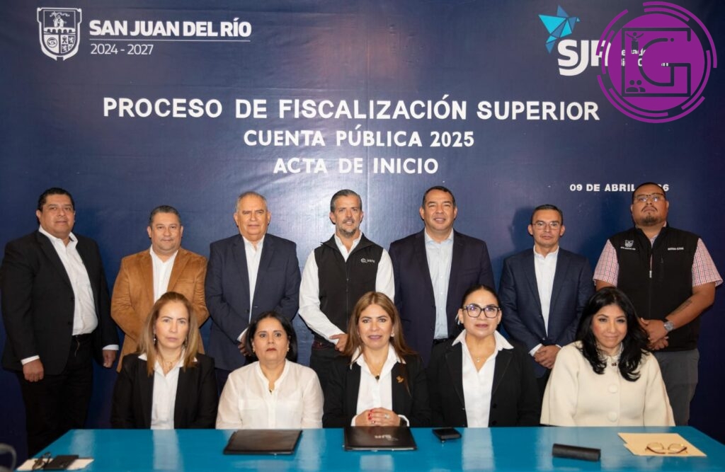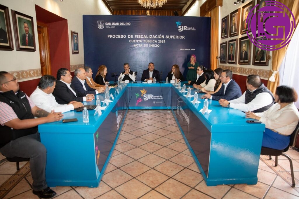 Con la finalidad de dar inicio al proceso de fiscalización de la cuenta pública 2025, el auditor superior del Estado de Querétaro, Francisco Javier Covarrubias Enríquez, y el presidente municipal de San Juan del Río, Roberto Cabrera Valencia, firmaron el Acta de Inicio del Proceso de Fiscalización 2025 en el Salón Presidentes de la antigua presidencia municipal, ubicada en el Centro de la demarcación.