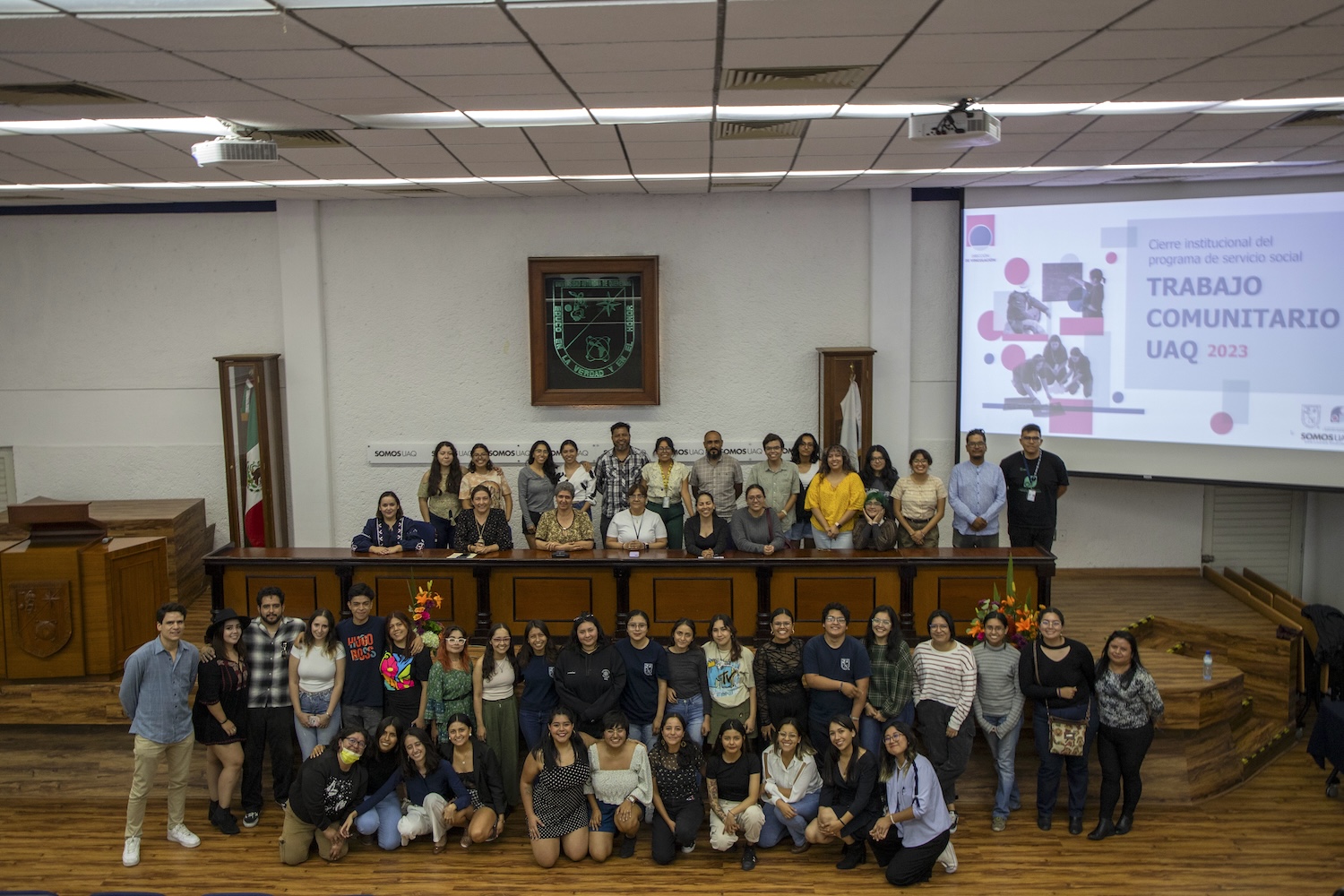 Con el objetivo de realizar el cierre institucional de los proyectos de Trabajo Comunitario de la Universidad Autónoma de Querétaro (UAQ) 2023, hechos por los alumnos de las diferentes facultades, autoridades de esta institución escucharon las conclusiones y los resultados de esta edición, que contó con la participación de 48 estudiantes y seis proyectos con impacto en los municipios de Colón, Ezequiel Montes, Jalpan de Serra, Peñamiller, Pinal de Amoles, Tequisquiapan y Tolimán.