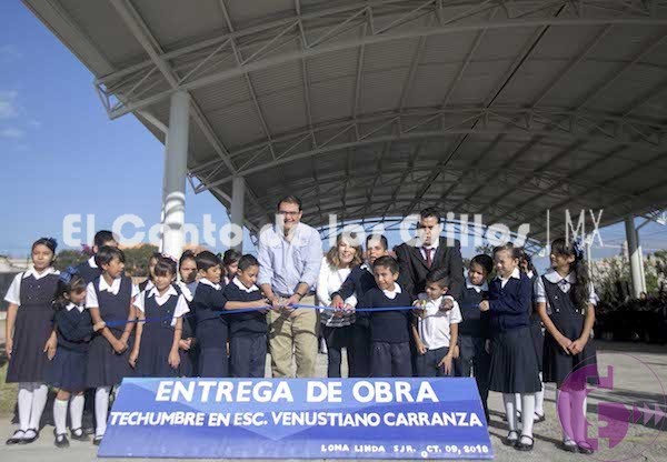 Con la premisa de que impulsar la educación es fundamental para el desarrollo integral de los niños y jóvenes, el presidente municipal de San Juan del Río, Memo Vega, realizó la entrega de las obras de construcción de techumbre y remodelación de sanitarios de la primaria “Venustiano Carranza”, en Loma Linda, las cuales habían sido solicitada por los padres de familia y a la que se comprometió el Edil sanjuanense.