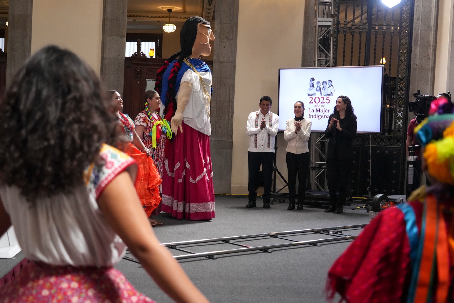 Junto a representantes de los 16 pueblos originarios de Oaxaca: amuzgos, cuicateco, chatino, chinantecos, chocholteco, chontal, huave, ixcateco, mazateco, mixe, mixteco, nahua, triqui, zapoteco, zoque y afromexicano, presentó el calendario de algunas de las actividades de la Guelaguetza 2025: