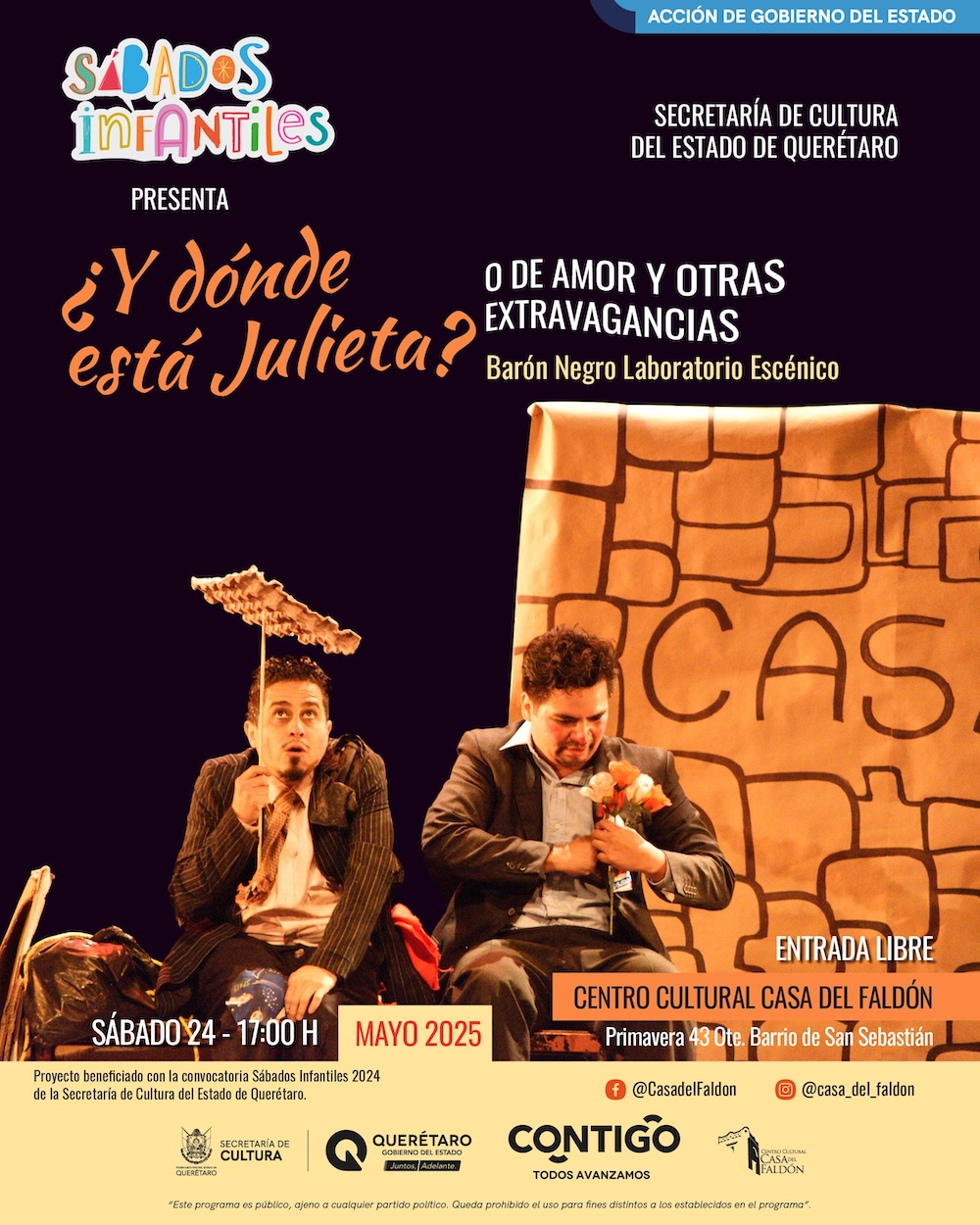 Como parte del ciclo Sábados Infantiles, el próximo 24 de mayo se presentará en el Centro Cultural Casa del Faldón la obra “¿Y dónde está Julieta? O de amor y otras extravagancias”, una puesta en escena que se construye sobre un universo infantil, no exclusivo para la niñez, pero sí apelando a la inocencia y a la malicia del primer amor.