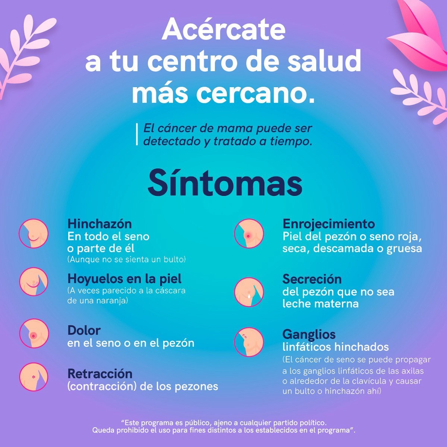 Es importante destacar que ante cualquier síntoma como hinchazón en senos, hoyuelos en la piel, dolor, retracción de pezones, enrojecimiento, secreción y ganglios linfáticos hinchados pueden comunicarse a los teléfonos 442 870 6071 de MUCCAM; y al 446 120 5636 de Uneme.