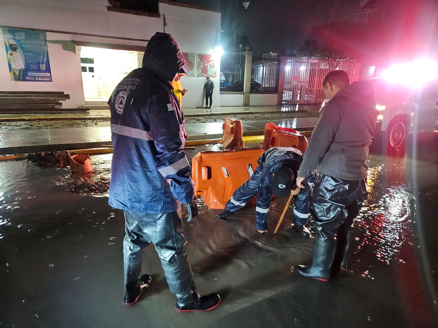 Durante las labores de asistencia se contó con el apoyo de personal de las coordinaciones municipales de Protección Civil, así como de la Policía Estatal de Querétaro y de las secretarías de Seguridad Pública y Tránsito Municipal; así como de personal de Servicios Públicos Municipales de Querétaro.