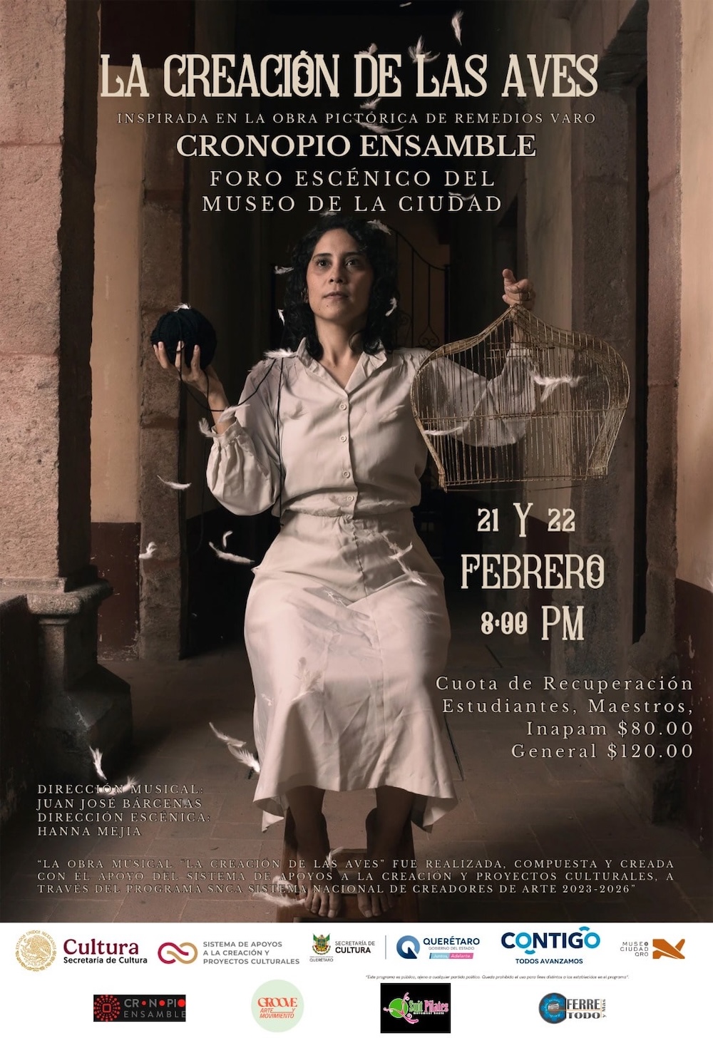 Con una cuota de recuperación general de 120 pesos, y de 80 para maestros, estudiantes y personas con credencial del Inapam, las funciones tendrán lugar a las 20:00 horas; el Museo de la Ciudad se encuentra ubicado en Vicente Guerrero Norte, número 27, en el Centro Histórico de la ciudad de Querétaro.