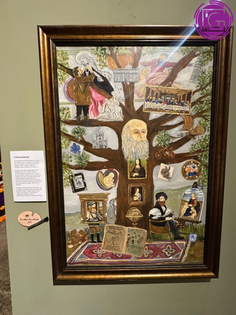 Cabe señalar que el árbol está siempre presente como símbolo de crecimiento, de conexión con el mundo y de la diversidad de culturas y familias artísticas, y es también fuente de vida y de inmortalidad. Es La Catrina quien recuerda, precisamente, que el arte está más vivo que nunca, que una escuela de pintura genera otra, y es así como se va construyendo la historia del arte.
