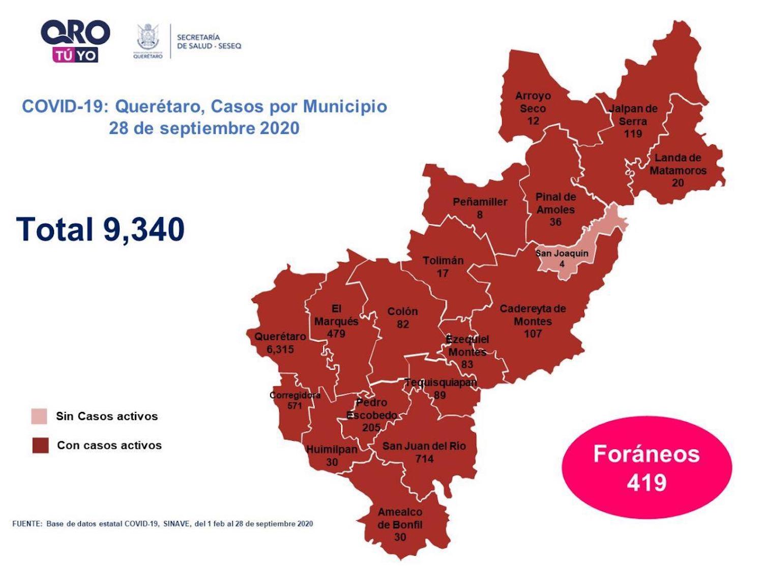 En la entidad se tiene un registro acumulado de nueve mil 340 casos de Covid-19, 45% son mujeres y 55% son hombres.