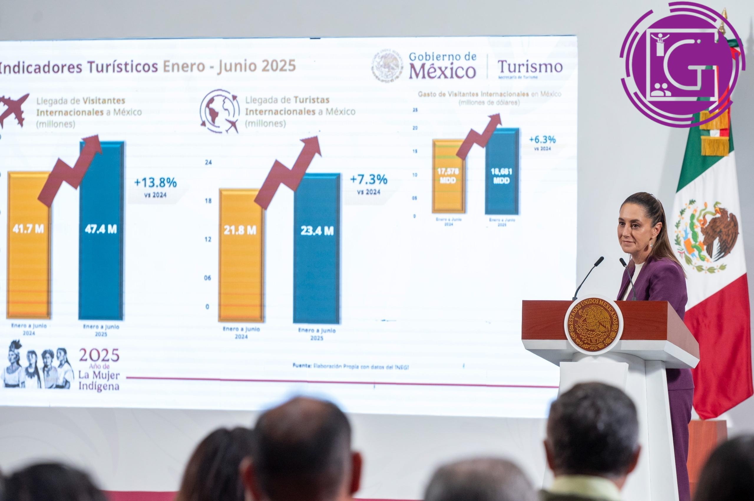El gobierno de México, a través de la Secretaría de Turismo, informó que, de enero a junio de 2025, se registró la llegada de 47.4 millones de visitantes internacionales, lo que representa 13.8 por ciento más respecto al mismo periodo en 2024. Además, se recibieron a 23.4 millones de turistas internacionales, un incremento del 7.3 por ciento, adicional a ello, el gasto de los visitantes fue de 18 mil 681 millones de dólares, un aumento del 6.3 por ciento más que el año pasado.