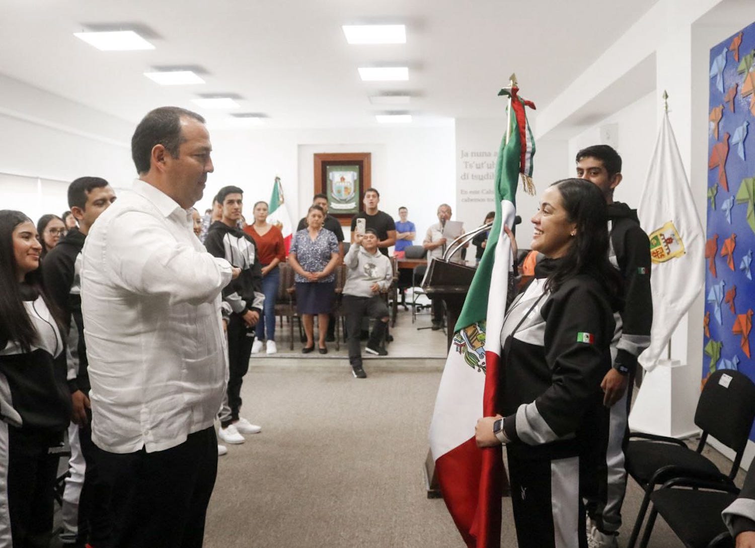Antes de realizar el abanderamiento de la directora de la agrupación, Nayeli Olguín Márquez, Cabrera Valencia manifestó que el municipio de San Juan del Río, a través de la compañía de danza Mecehualtin Mitotiani, contará diferentes historias durante sus presentaciones en Europa.