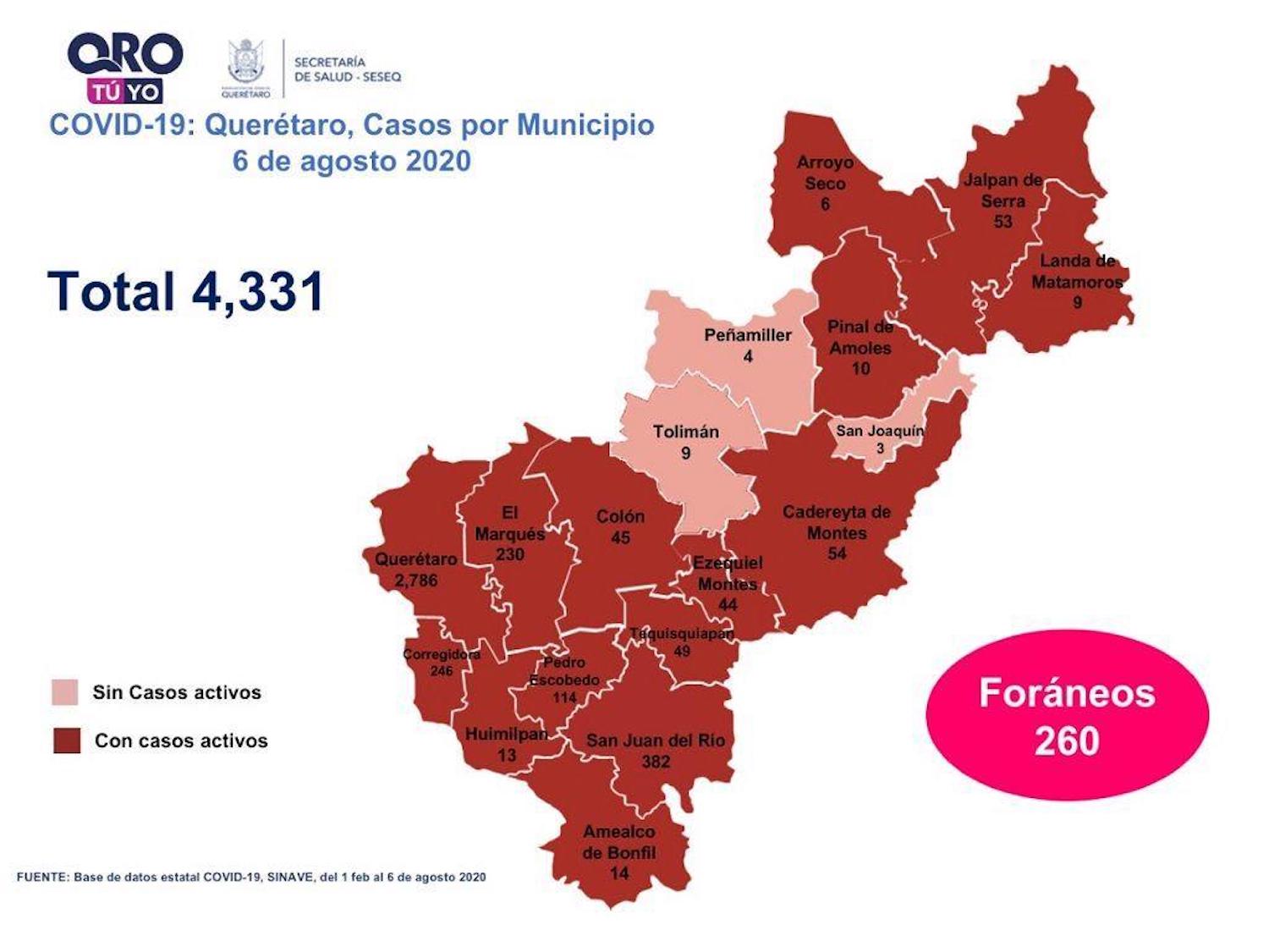 En la entidad se tiene un registro acumulado de cuatro mil 331 casos de Covid-19; 43% son mujeres y 57% son hombres.