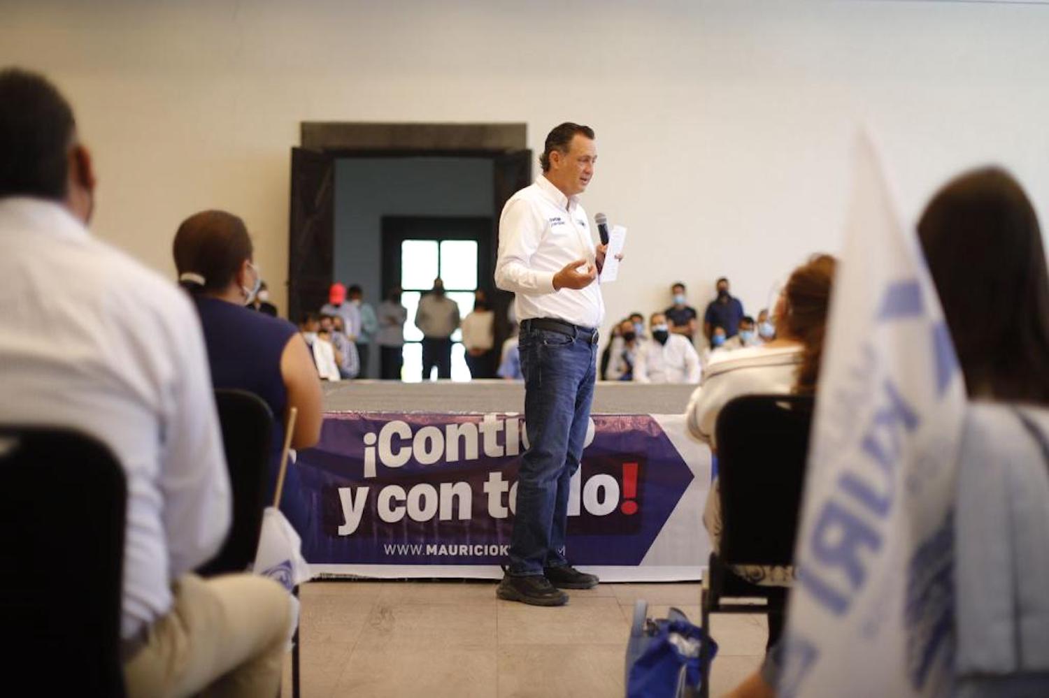 En una gira de trabajo que realizó el candidato Mauricio Kuri González por el municipio de San Juan del Río, tuvo un encuentro con líderes de cámaras de Comercio, colegios de Profesionistas y ciudadanos, a quienes les presentó sus proyectos y acciones para llevar a cabo en el estado y en dicha demarcación.