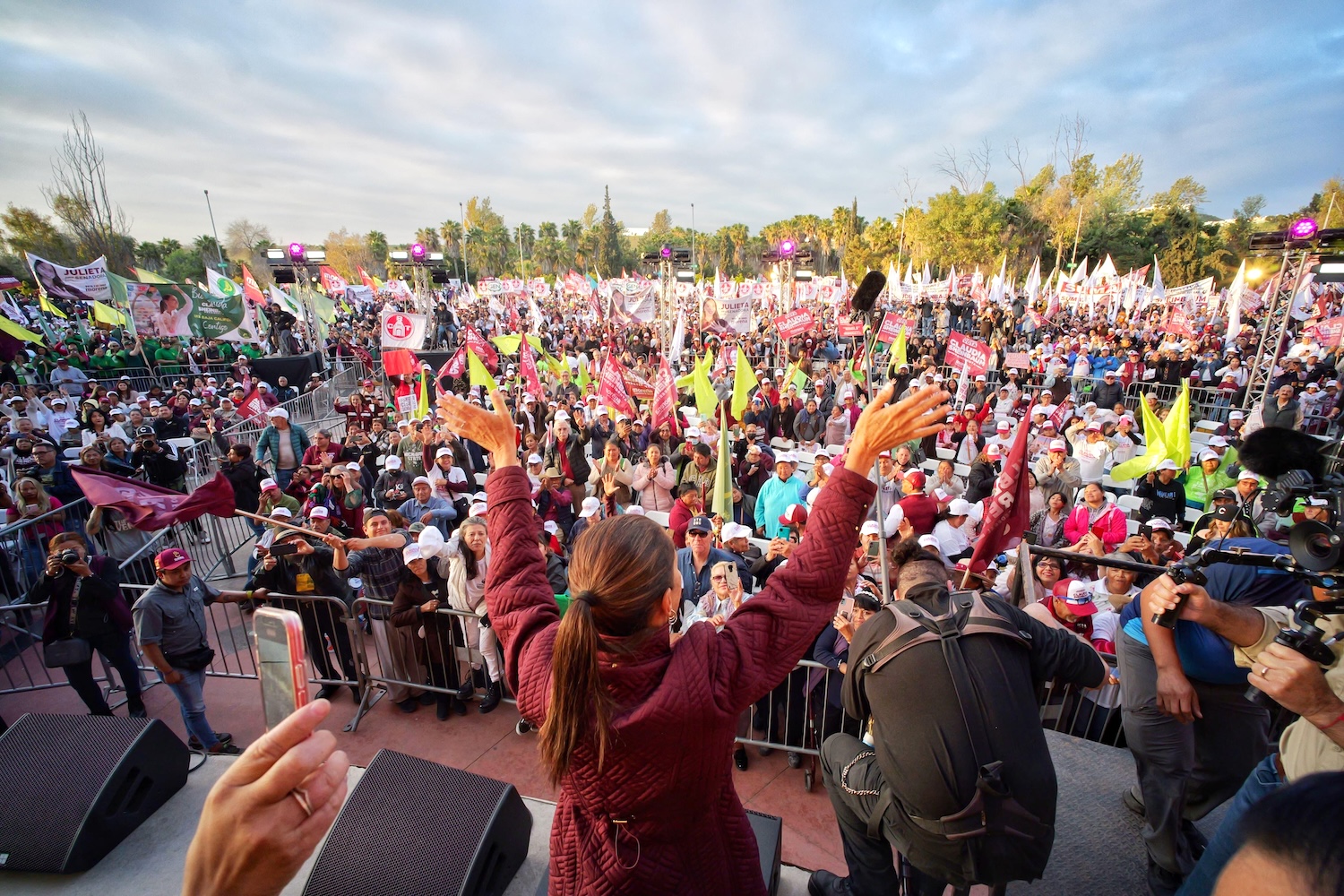 “Estamos aquí porque queremos ser parte de este momento histórico, queremos ser parte de la historia de México, porque queremos ver a una mujer mexicana siendo por primera vez presidenta, a Claudia Sheinbaum”, apuntó.