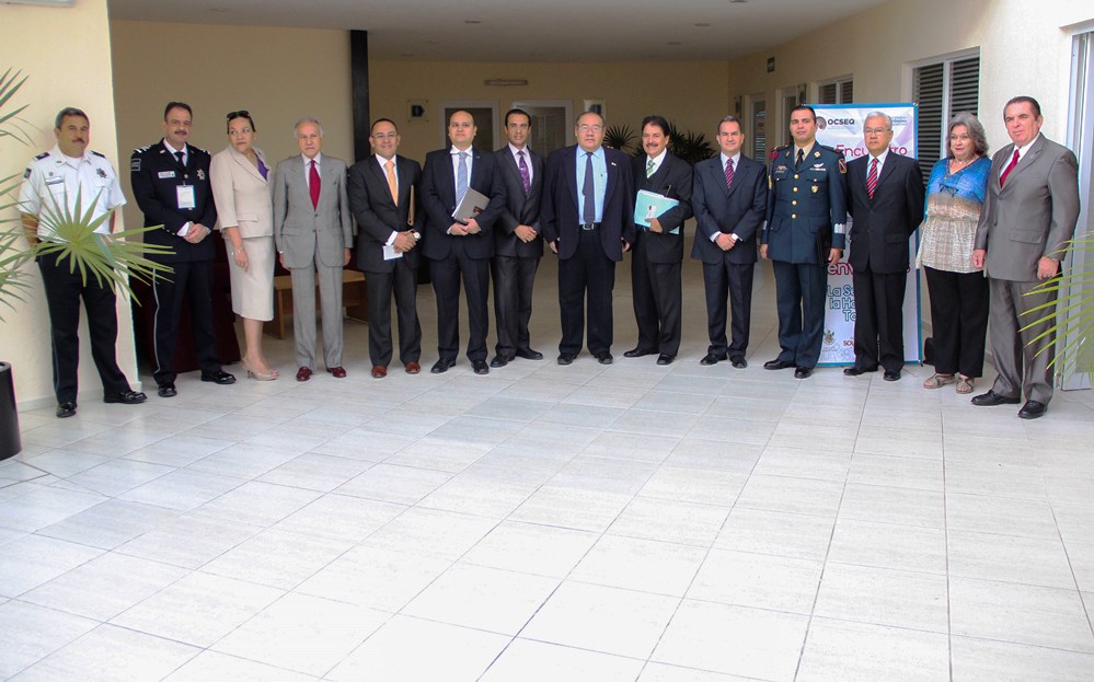 En el evento estuvieron presentes: Mtro. Óscar Guerra Becerra, abogado general de la UAQ; Ing. José Alejandro Ley Peralta, presidente del Consejo Consultivo del OCSEQ; Cap. Adolfo Vega Montoto, secretario de Seguridad Ciudadana del Estado de Querétaro; Lic. Ernesto Gutiérrez Amador, delegado de la Procuraduría General de la República; José Luis Avedillo Tejeda, comisario de la Policía Federal; Lic. Juan Carlos Padilla, representante de la Secretaría de Gobernación y el Teniente Coronel Iván Ramos Ortiz, en representación de la XVll Zona Militar.