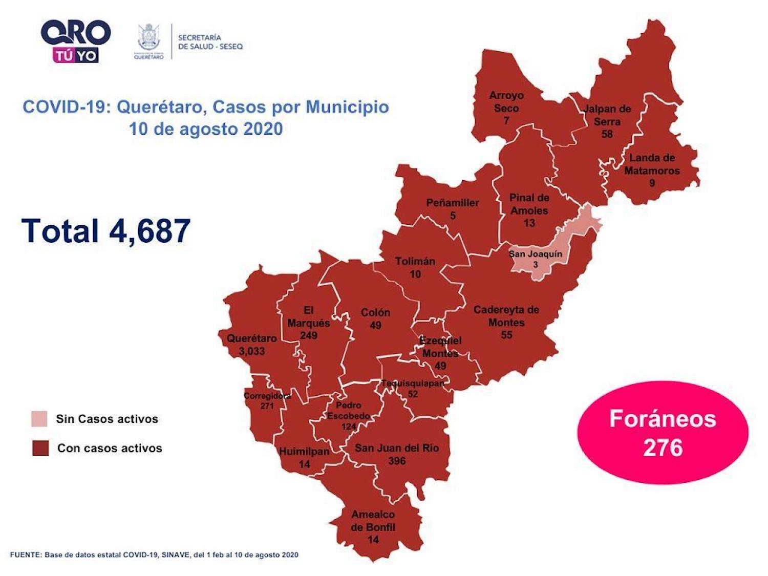 En la entidad se tiene un registro acumulado de cuatro mil 687 casos de Covid-19; 44% son mujeres y 56% son hombres.