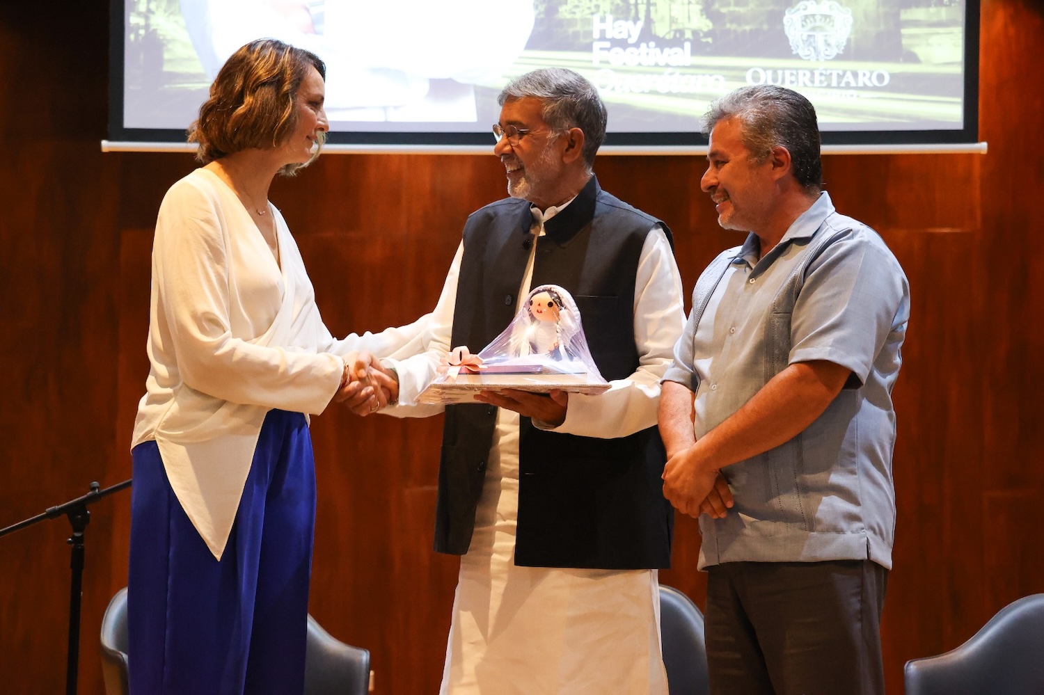 En el Marco del Hay Festival Querétaro 2024, en su novena edición, se llevó a cabo una conferencia a cargo de ganador del Premio Nobel de la Paz 2014 y activista por los derechos de los niños y la educación universal, Kailash Satyarthi; teniendo como anfitriones a la presidenta de la Comisión de Educación y Cultura de la LX Legislatura, diputada Ana Paola López Birlain; y al director de la Facultad de Bellas Artes de la Universidad Autónoma de Querétaro, Sergio Rivera.