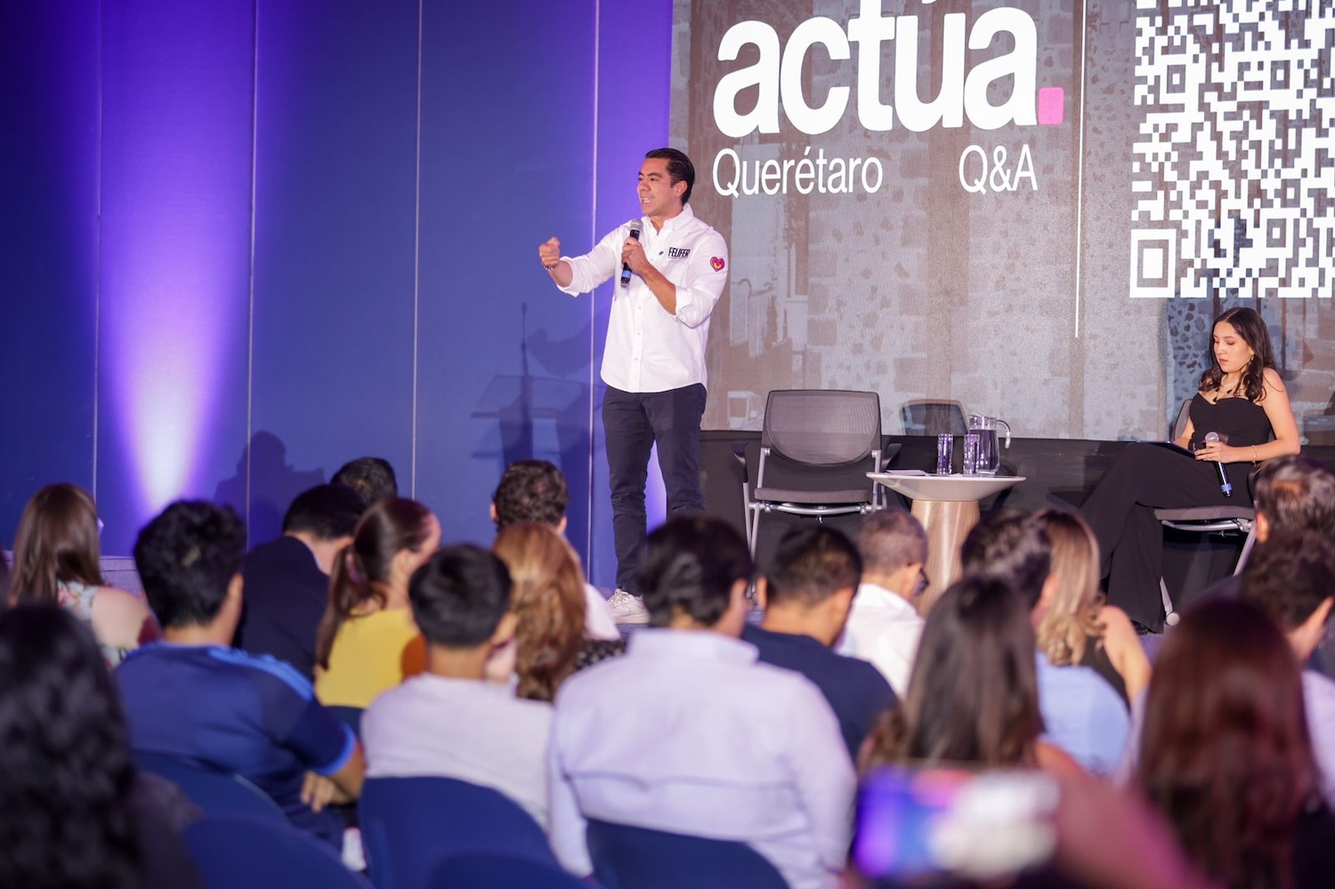 Felifer Macías concluyó su intervención invitando a los jóvenes a participar activamente en las próximas elecciones, pues señaló que es necesario que se involucren en la toma de decisiones para construir el mejor Querétaro de la historia.