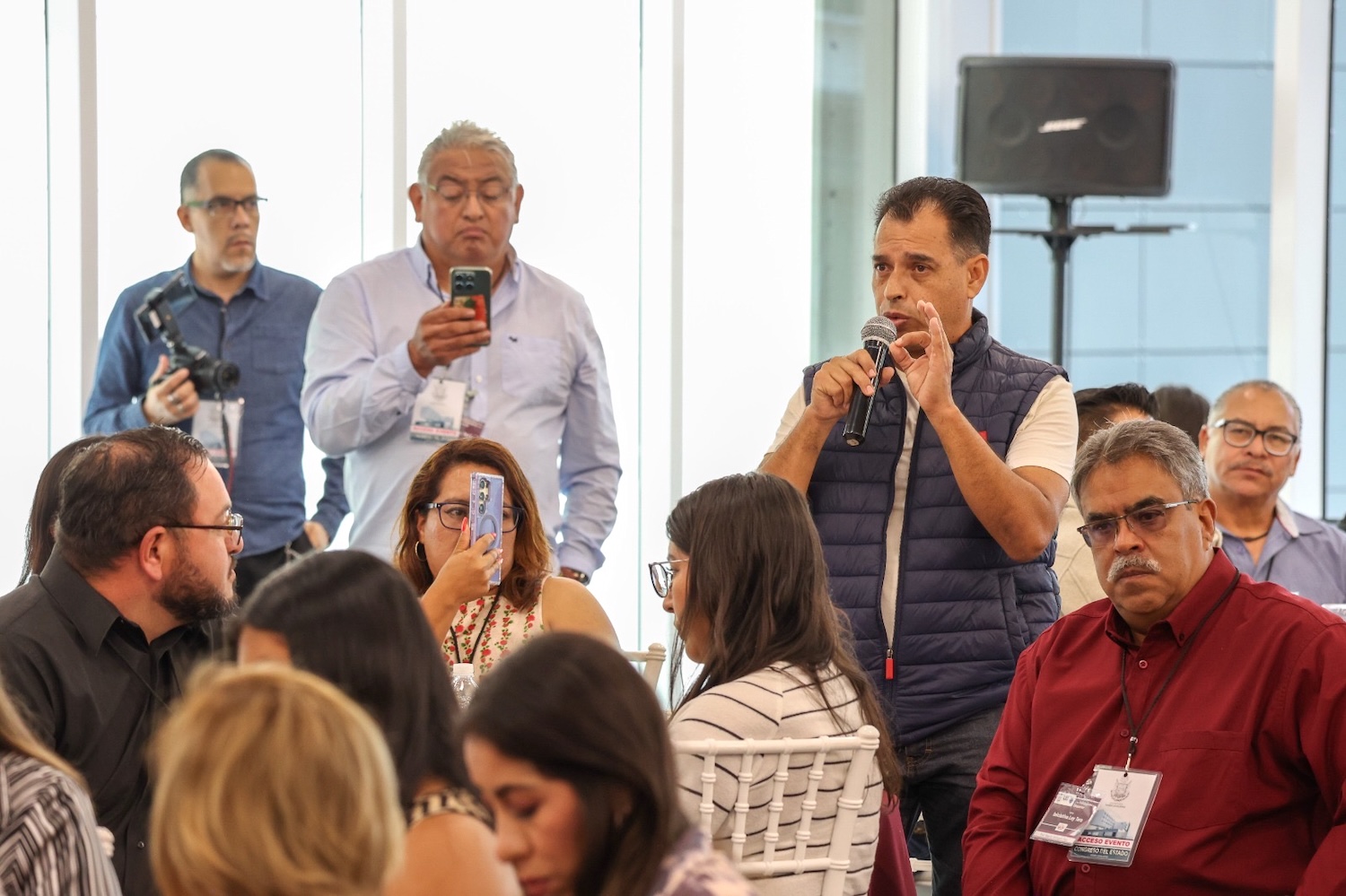 Díaz Gayou indicó que esta iniciativa no hubiera sido posible sin el valor y la voz de quienes alzan la mano, no para pedir un privilegio, sino para exigir una justicia; qué motiva esta iniciativa, el hecho que el día de hoy ser maestra o maestro, no solamente implica enseñar, acompañar y orientar, también significa estar expuesto a calumnias, a denuncias infundadas, a procedimientos administrativos arbitrarios, que dañan no solamente el empleo, sino también la salud mental, la estabilidad familiar y la vocación misma. Una prueba viva de esta realidad son los docentes que han sido víctimas de denuncias infundadas, las cuales no solamente carecen de sustento legal, sino que en muchos casos, han derivado incluso en la privación de su libertad, afectando profundamente su integridad personal, su entorno familiar y su proyecto de vida”.