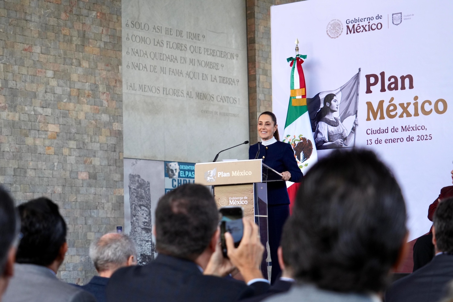 “El objetivo es seguir haciendo de México el mejor país del mundo. Nuestro país es una potencia cultural y nuestro objetivo es disminuir pobreza, desigualdades, pero que cada uno de los mexicanos y mexicanas sepa que hay plan, que hay desarrollo, que frente a cualquier incertidumbre que venga en el futuro próximo, México tiene un plan y está unido hacia adelante”, destacó desde el Museo Nacional de Antropología.