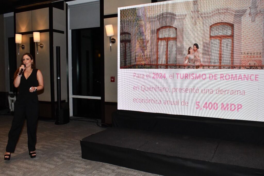 Expuso que el turismo de romance en Querétaro se distingue por la riqueza cultural y arquitectónica, la tradición vitivinícola y la hospitalidad que caracteriza a sus anfitriones, lo que lo convierte en un destino ideal para celebrar bodas, aniversarios y eventos especiales.