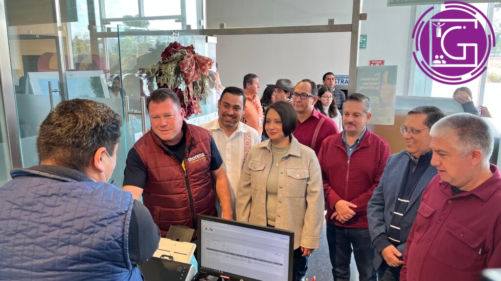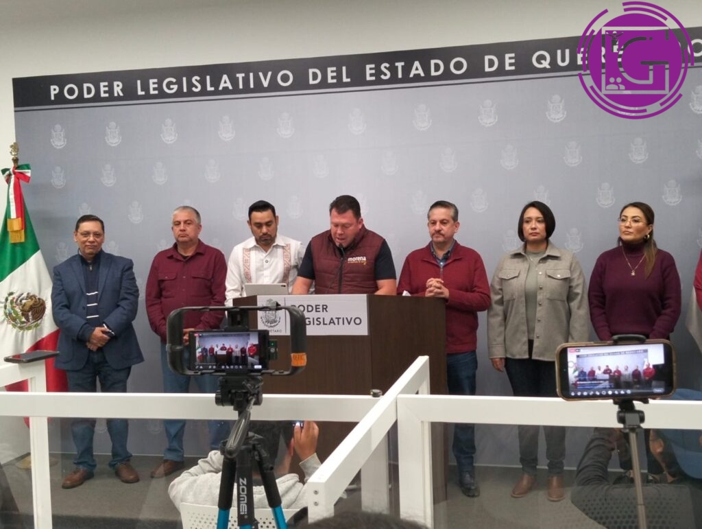El diputado Homero Barrera, integrante del Grupo Legislativo de Morena en la LXI Legislatura del Estado, acompañado de su coordinador legislativo, Édgar Inzunza Ballesteros; de las legisladoras Sully Mauricio, Claudia Díaz, así como de los diputados Sinuhé Piedragil y Ulises Gómez, además del diputado federal Luis Humberto Fernández y el secretario general de Morena en Querétaro, Israel Pérez, dio a conocer la iniciativa de ley que deroga el delito de extorsión en el Código Penal para el estado de Querétaro”.
