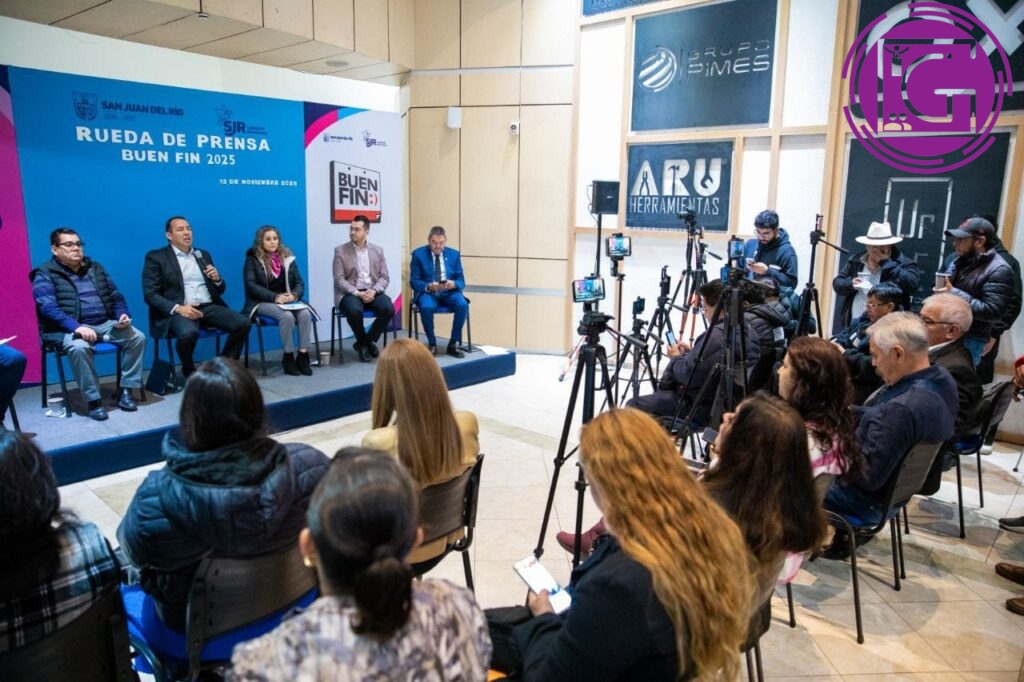 En rueda de prensa, el presidente municipal de San Juan del Río, Roberto Cabrera Valencia, resaltó que, durante el periodo de “El Buen Fin 2025”, se busca que lo que prevalezca sea la seguridad de las personas. Añadió que por medio de estas iniciativas se fortalece la economía de las familias sanjuanenses, quienes cuentan con mejores opciones de compra, o bien, incrementan sus ventas, lo que abona a la construcción de una mejor ciudad con un Legado de Bien Común.