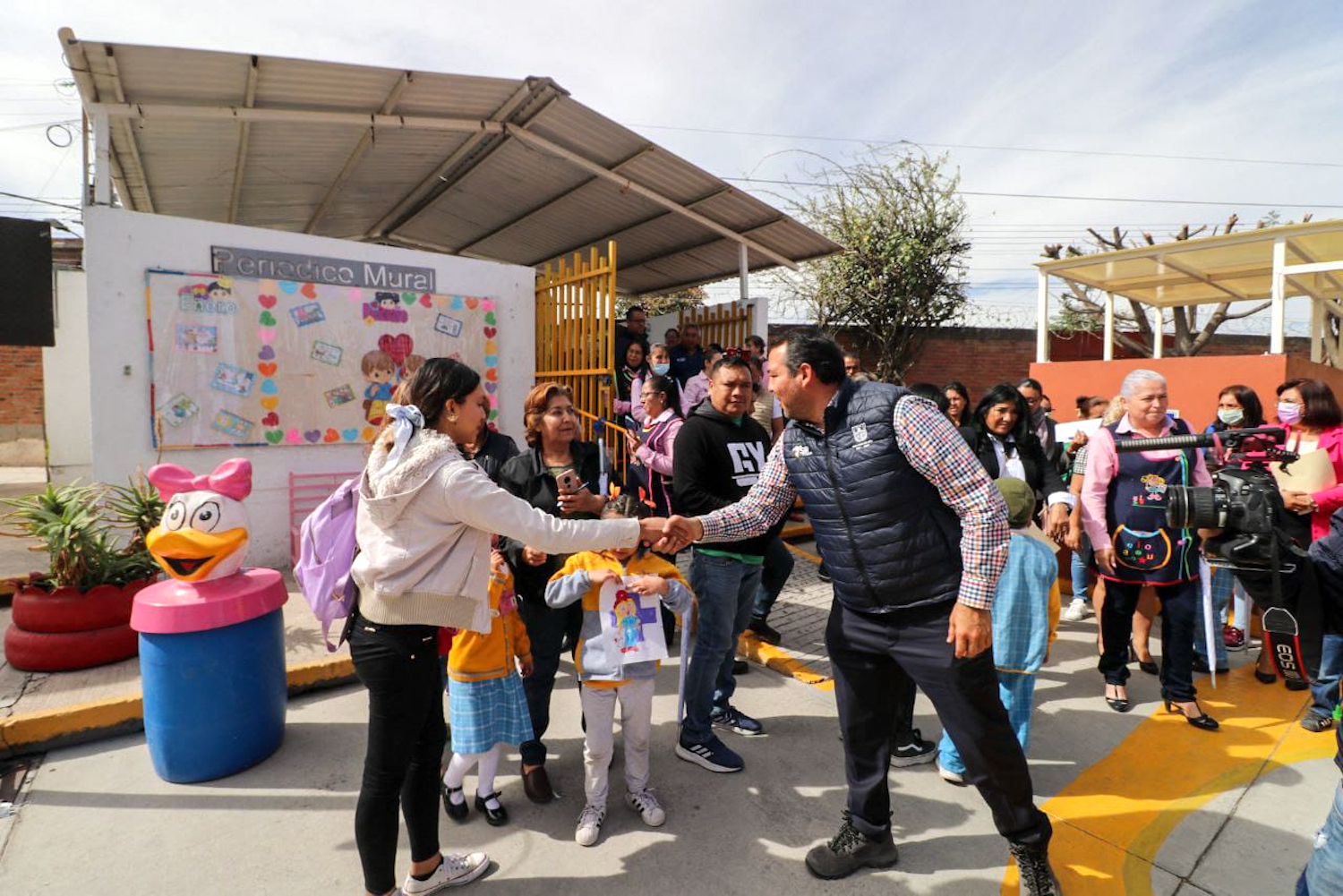 “Nunca han dejado decaer este jardín de niños. Siempre han procurado mantener estas instalaciones lo mejor que se puede para nuestros niños, que son nuestro presente. (…) El gobierno municipal entregó apoyos, pintura, columpios, proyectores. Siempre la sociedad y padres de familia manifestando sus necesidades al gobierno, y el gobierno da una respuesta positiva. Se instalaron pisos en los salones, 240 metros cuadrados de piso por parte del Gobierno Municipal”, refirió.