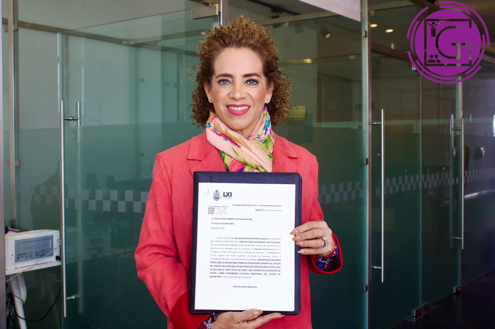 Con el firme compromiso de preservar las tradiciones que dan identidad al municipio de Colón, el pasado 13 de noviembre, la diputada Adriana Meza presentó ante la Oficialía de Partes de la LXI Legislatura del estado de Querétaro, la iniciativa de ley para que el arte textil de lana del municipio de Colón sea reconocido como Patrimonio Cultural Inmaterial.