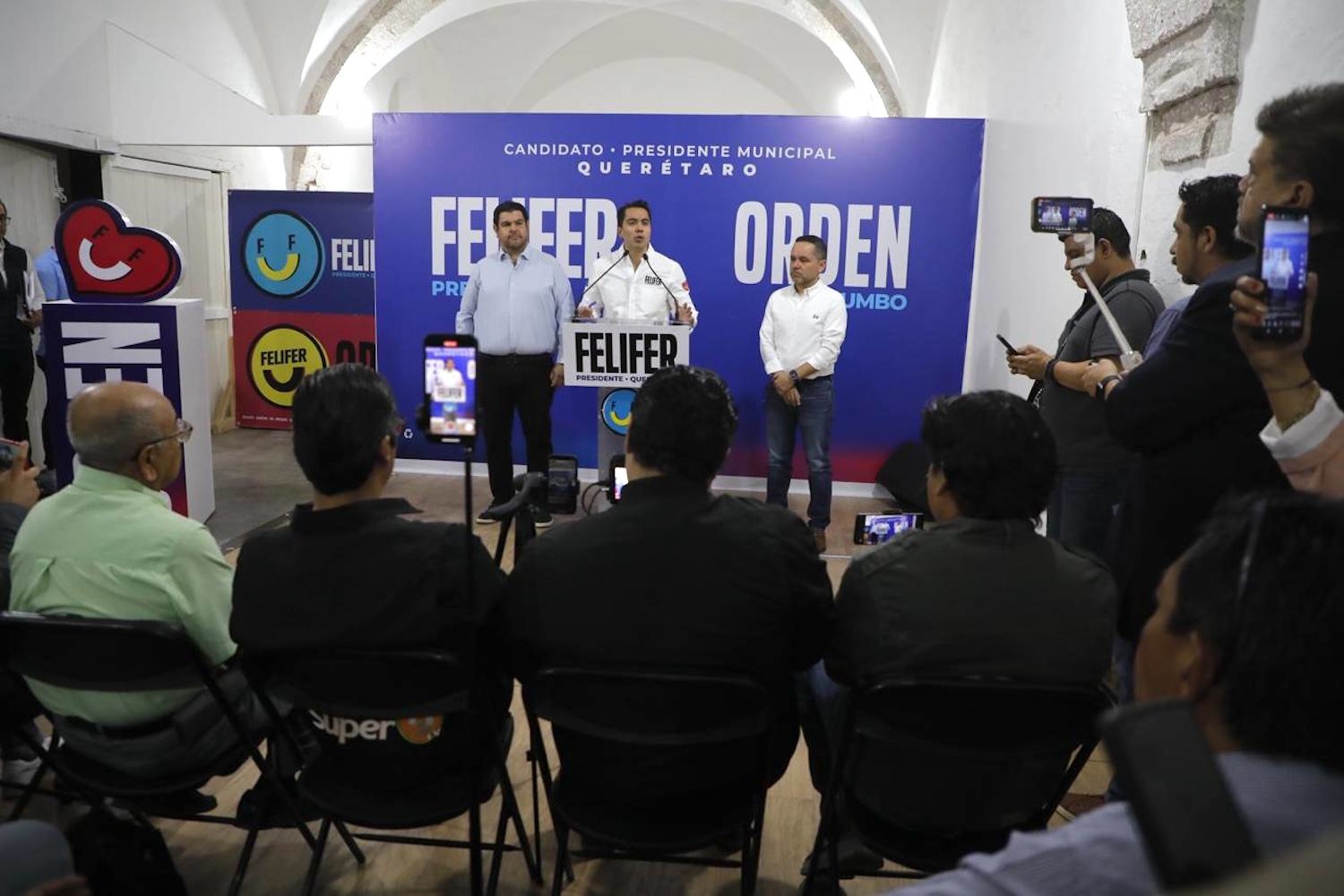 Felifer Macías, candidato a la presidencia municipal de Querétaro por el PAN, PRI y PRD, presentó sus propuestas en materia de obra pública donde destacó una inversión histórica para obra social estimada en mil 500 millones de pesos, y el fortalecimiento de la participación ciudadana con ejercicios de gobierno abierto.