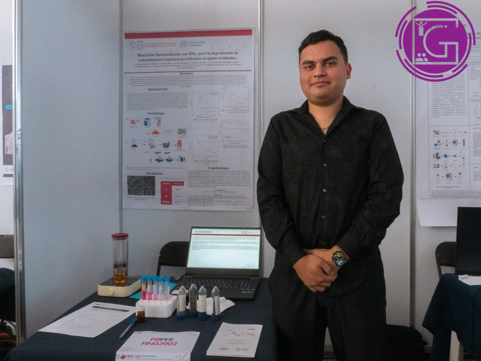 El planteamiento contó con la asesoría de Karen Esquivel Escalante, quien brindó acompañamiento académico y técnico en cada fase de su desarrollo. Su orientación permitió consolidar la viabilidad del esquema y fortalecer la proyección académica del joven dentro del campo de la nanociencia aplicada a la descontaminación ambiental.