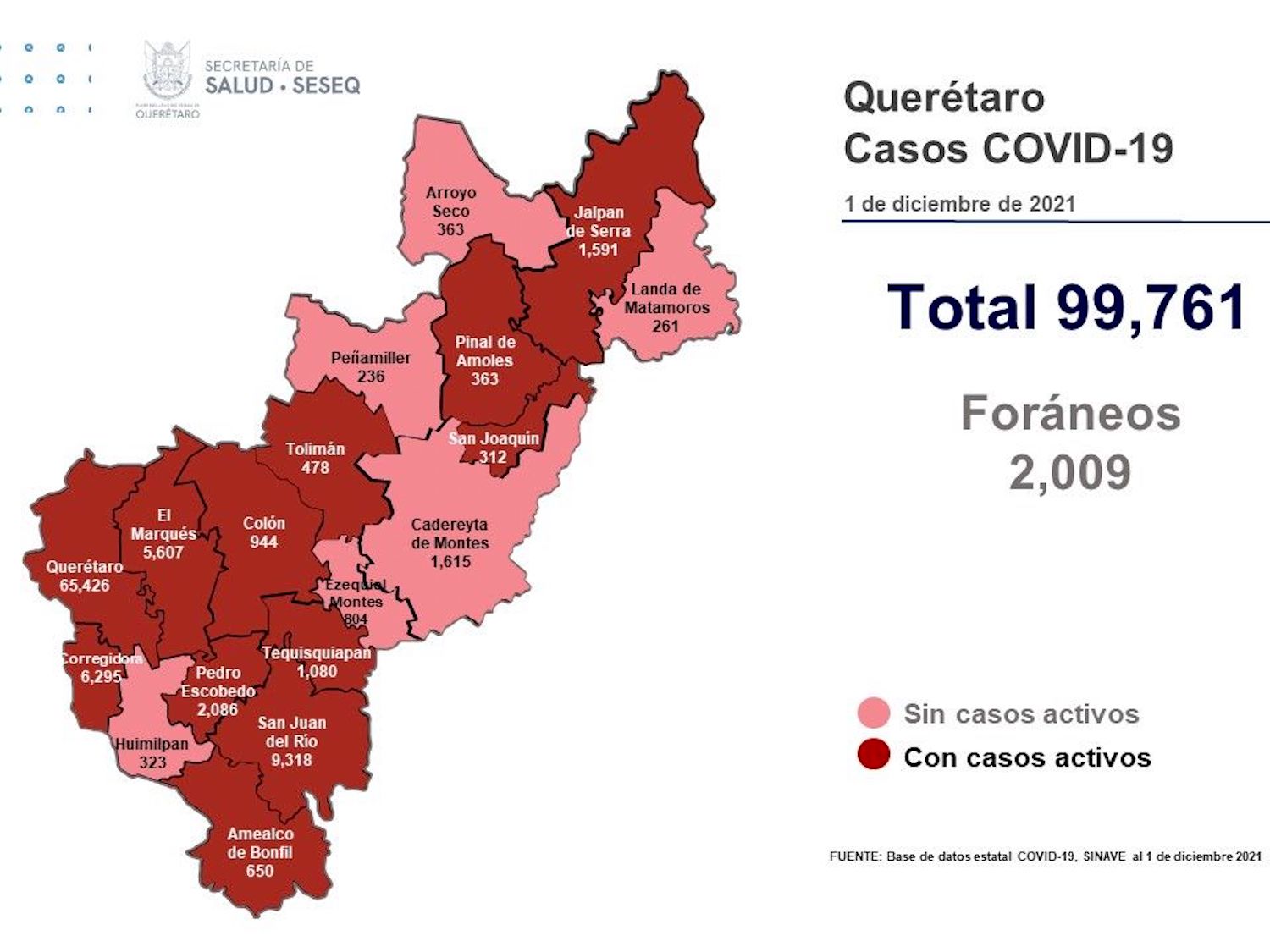La Secretaría de Salud de Querétaro reportó este miércoles cero defunciones por Covid-19, aunque se sumaron 60 casos de la enfermedad; se trata de 35 mujeres y 25 hombres.