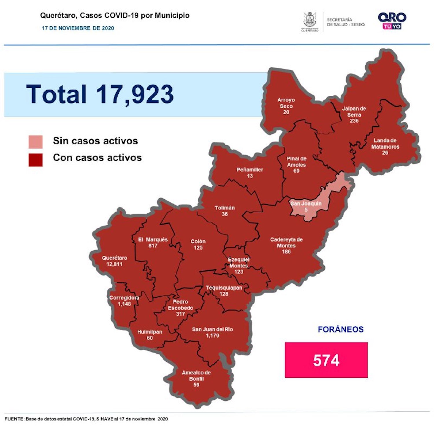 En la entidad se tiene un registro acumulado de 17 mil 923 casos de Covid-19; 49% son mujeres y 51% son hombres.