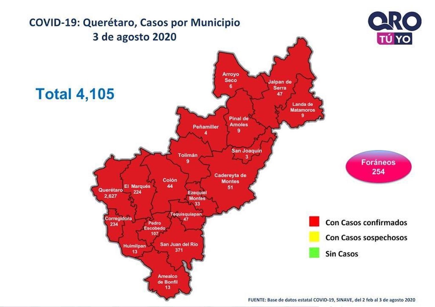 En Querétaro un hombre de 62 años con tabaquismo, una mujer de 71 con hipertensión arterial, una mujer de 73 con hipertensión arterial e insuficiencia renal, que se encontraban hospitalizados, fallecieron a causa de la enfermedad Covid-19.