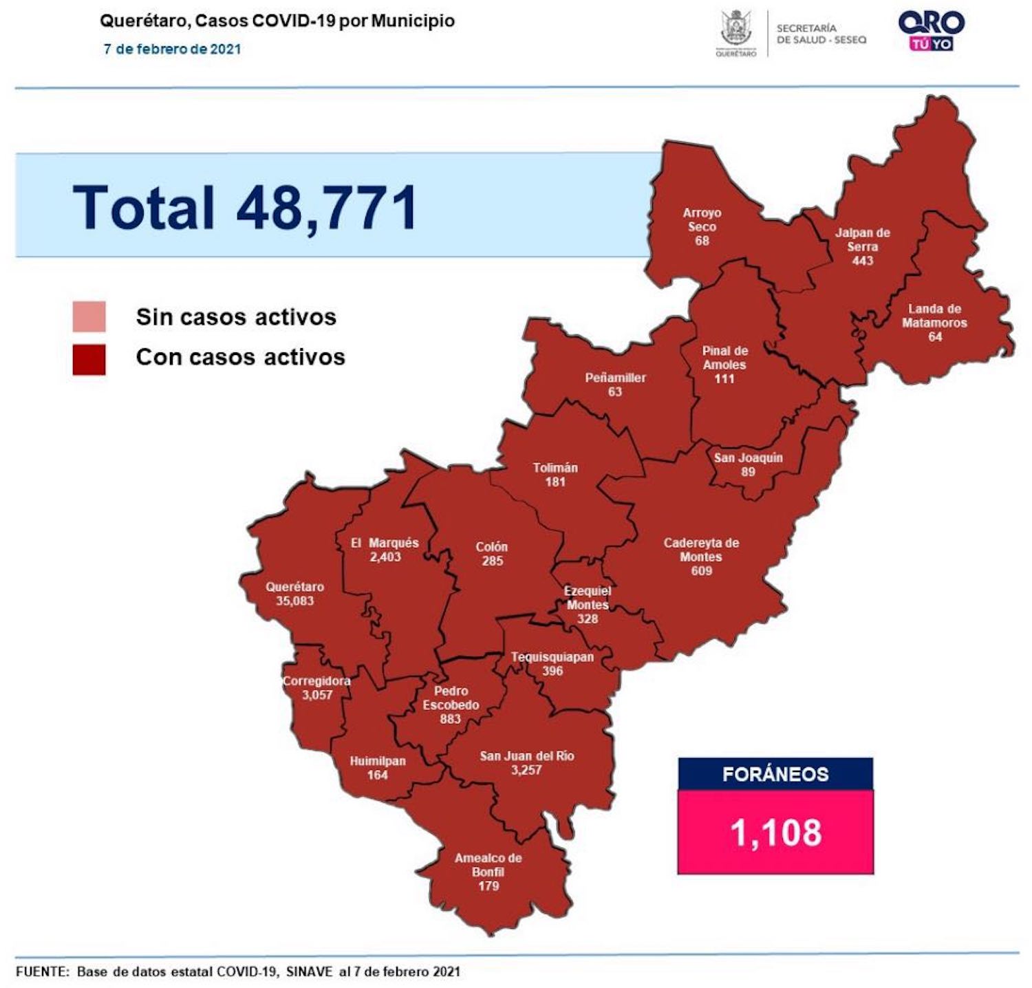 En la entidad se tiene un registro acumulado de 48 mil 771 casos de Covid-19; 50% son mujeres y 50% son hombres.