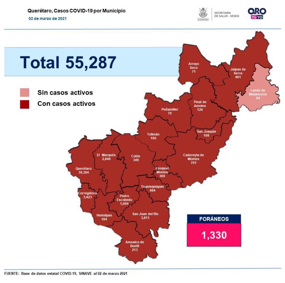 Querétaro, con 55 mil 287 contagios de #coronavirus