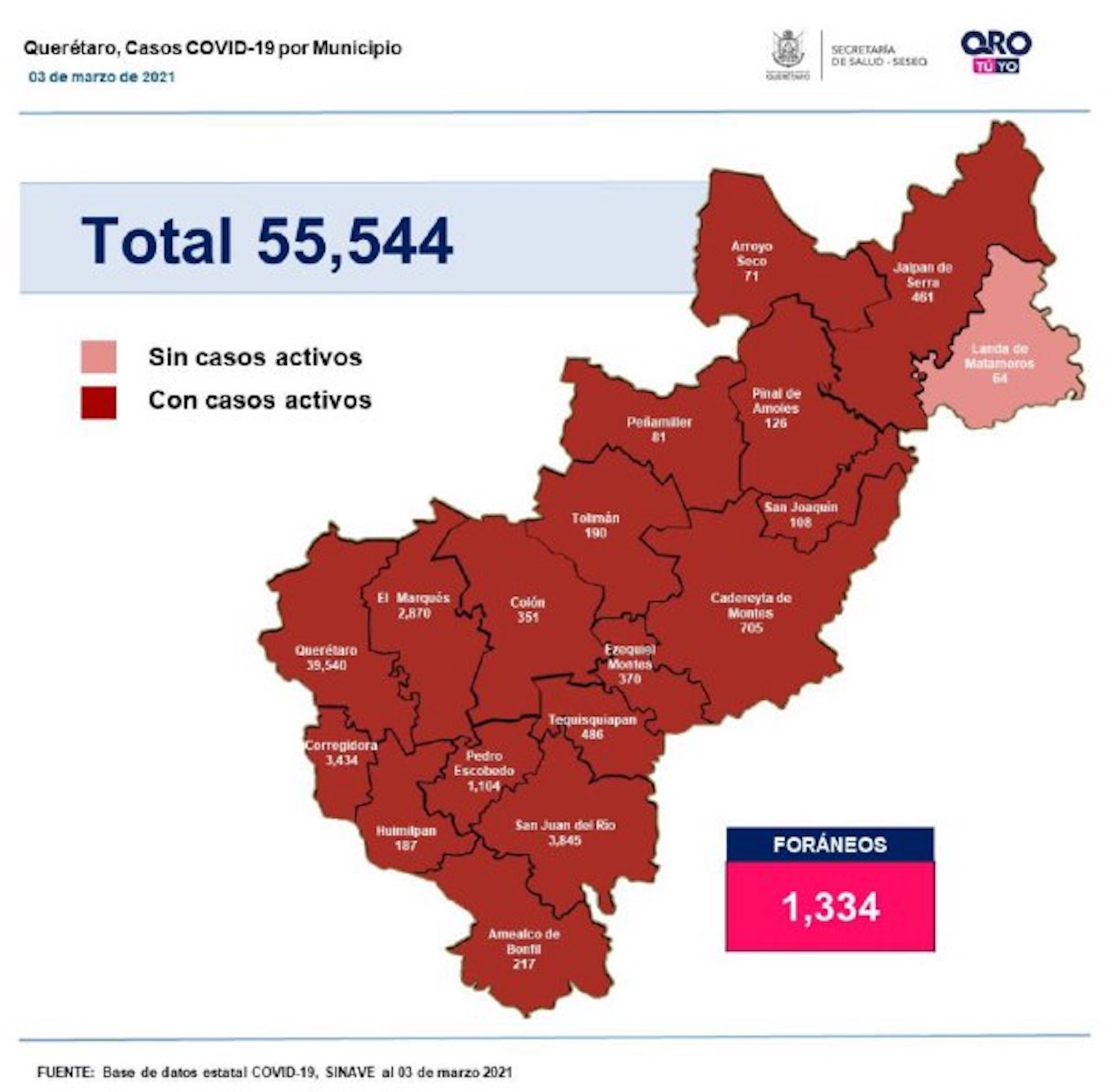 En la entidad se tiene un registro acumulado de 55 mil 544 casos de Covid-19; 51% son mujeres y 49% son hombres.