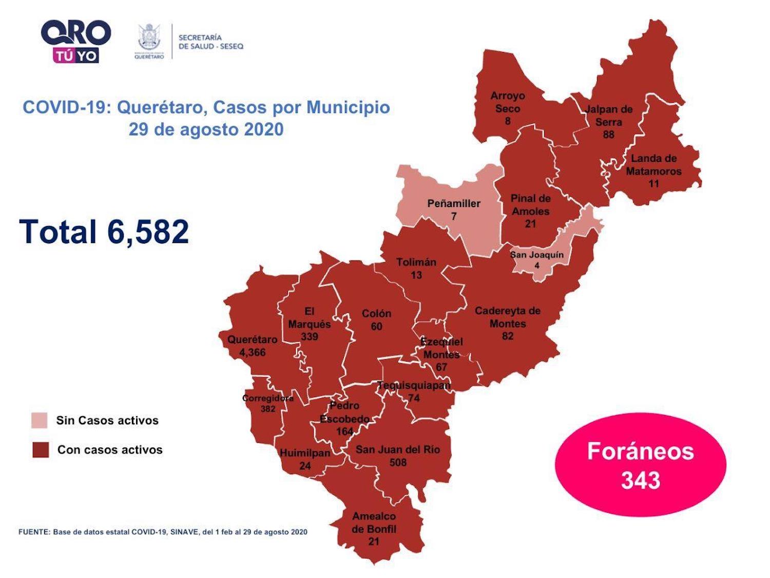 En la entidad se tiene un registro acumulado de seis mil 582 casos de Covid-19; 44% son mujeres y 56% son hombres.