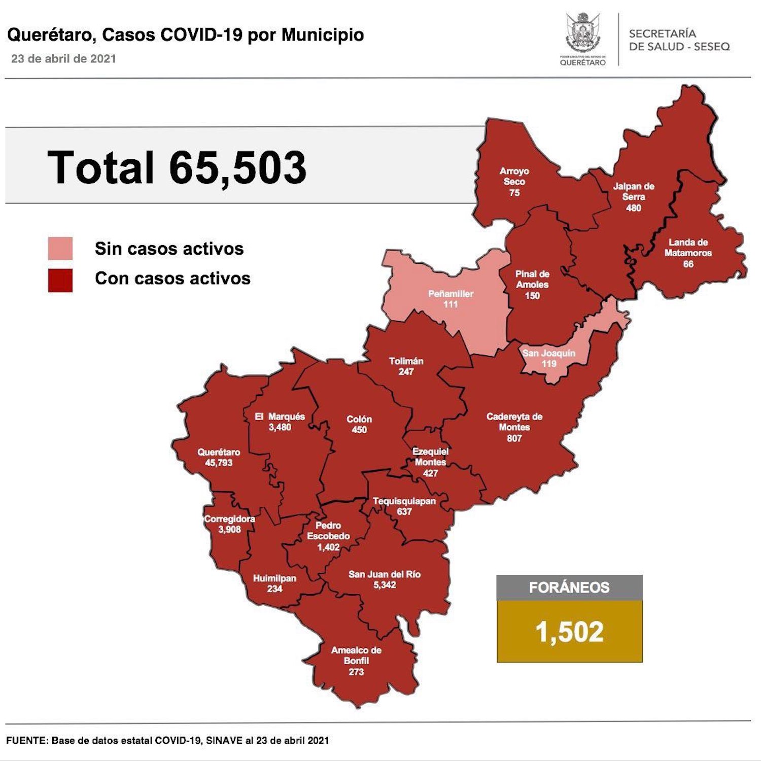 Se tiene un registro acumulado de 65 mil 503 casos de Covid-19; 51% son mujeres y 49% son hombres.