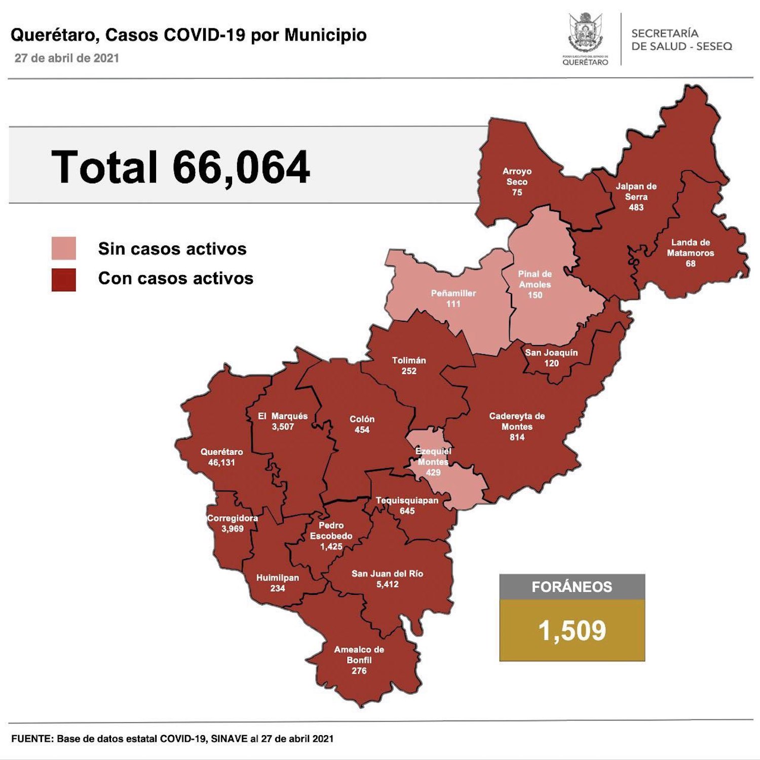 En Querétaro, tres hombres –de 46, 53 y 80 años– y tres mujeres –de 51, 71 y 84–, sin comorbilidad, así como diez hombres –de 53, 55, 57, 64, dos de 66, 69, 79, 86 y 89–, y dos mujeres –de 87 y 89 años–, con diversas comorbilidades, que se encontraban hospitalizados, fallecieron a causa de Covid-19.