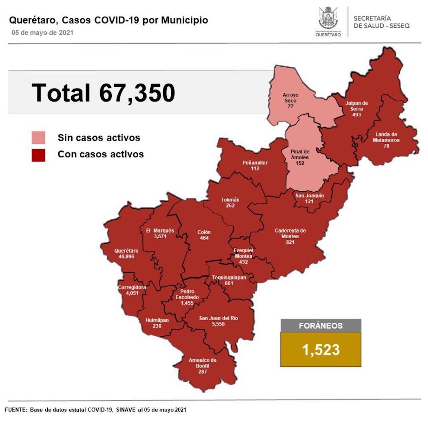 El registro acumulado es de 67 mil 350 casos de Covid-19; 51% son mujeres y 49% son hombres.