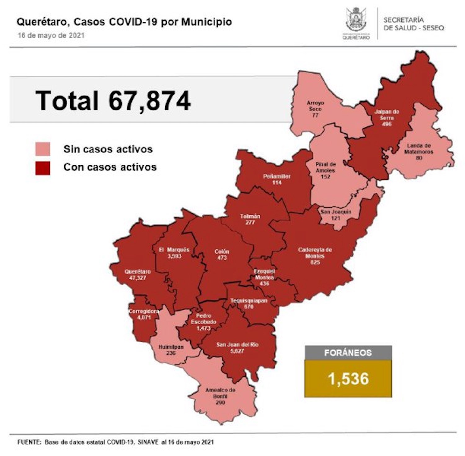 El registro acumulado es de 67 mil 874 casos de Covid-19; 51% son mujeres y 49% son hombres.