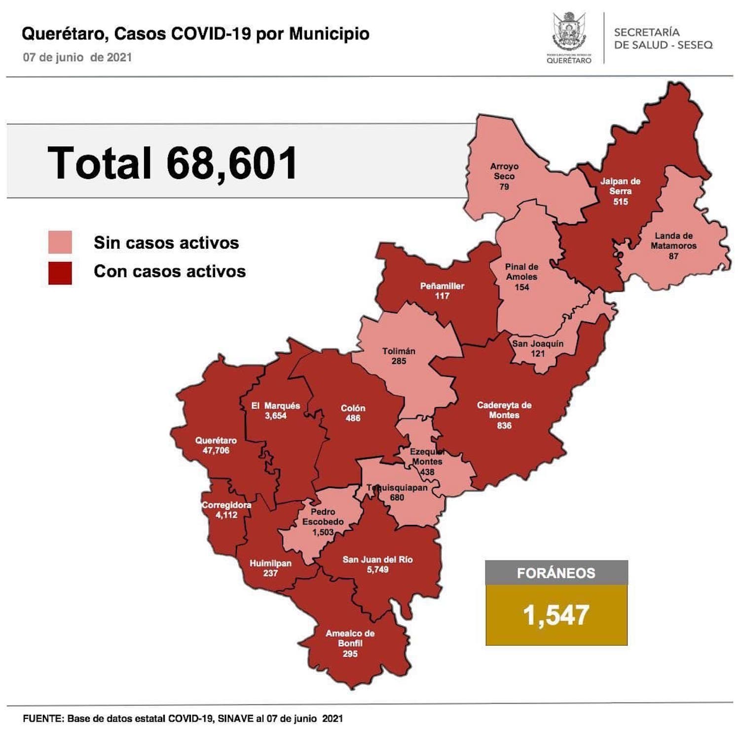 El registro acumulado es de 68 mil 601 casos de Covid-19; 51% son mujeres y 49% son hombres.