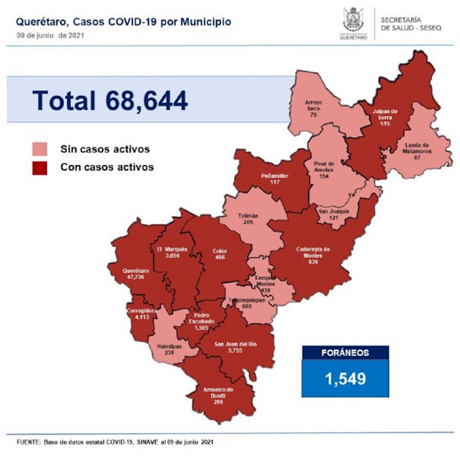 El registro acumulado es de 68 mil 644 casos; 51% son mujeres y 49% son hombres.