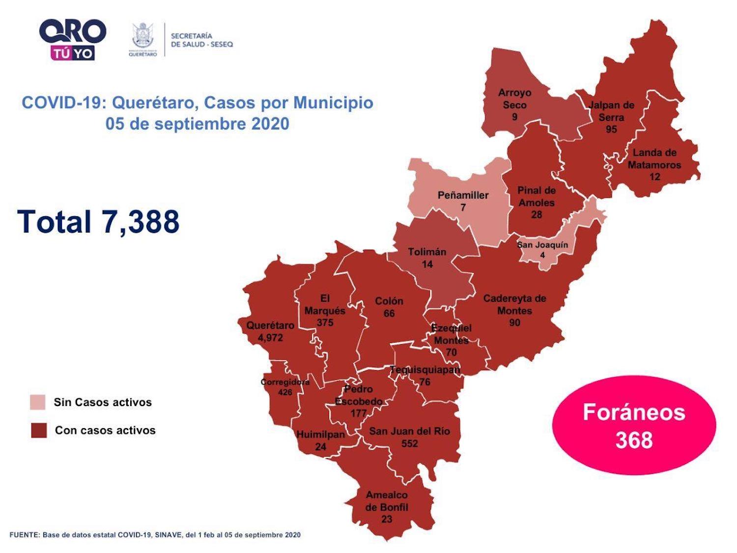 En la entidad se tiene un registro acumulado de siete mil 388 casos de Covid-19; 45% son mujeres y 55% son hombres.