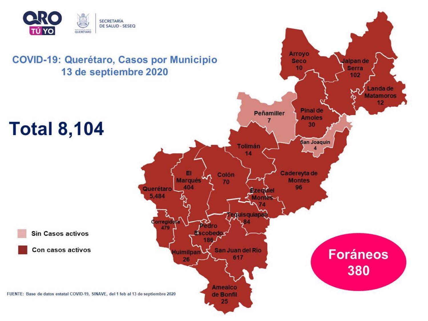 En Querétaro, un hombre de 29 años con diabetes, hipertensión arterial y cardiopatía, seis hombres de 30, 57, 58, 68, 70 y 76 sin comorbilidad, un más de 41 con hipertensión arterial, una mujer de 45 con obesidad, un hombre de 49 con cardiopatía, un hombre de 56 con diabetes, hipertensión arterial e insuficiencia renal, una mujer de 66 con tabaquismo, una mujer de 79 con enfermedad pulmonar obstructiva crónica e hipertensión arterial, un hombre de 80 y una mujer de 81 años con diabetes e hipertensión arterial, que se encontraban hospitalizados, fallecieron a causa de la enfermedad Covid-19.