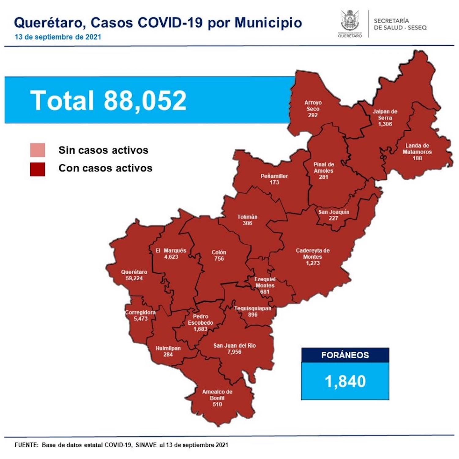 En Querétaro, nueve hombres –de 25, 28, 31, 54, 62, dos de 69, 72 y 81– y siete mujeres –de 35, 37, dos de 38, 45, 50 y 58 años–, sin comorbilidad, así como 14 hombres –de 33, 50, 57, dos de 60, 62, dos de 66, 68, 72, dos de 74, 75 y 90– y cuatro mujeres –de 59, 67, 72 y 90 años–, con diversas comorbilidades, que se encontraban hospitalizados, fallecieron a causa de Covid-19.