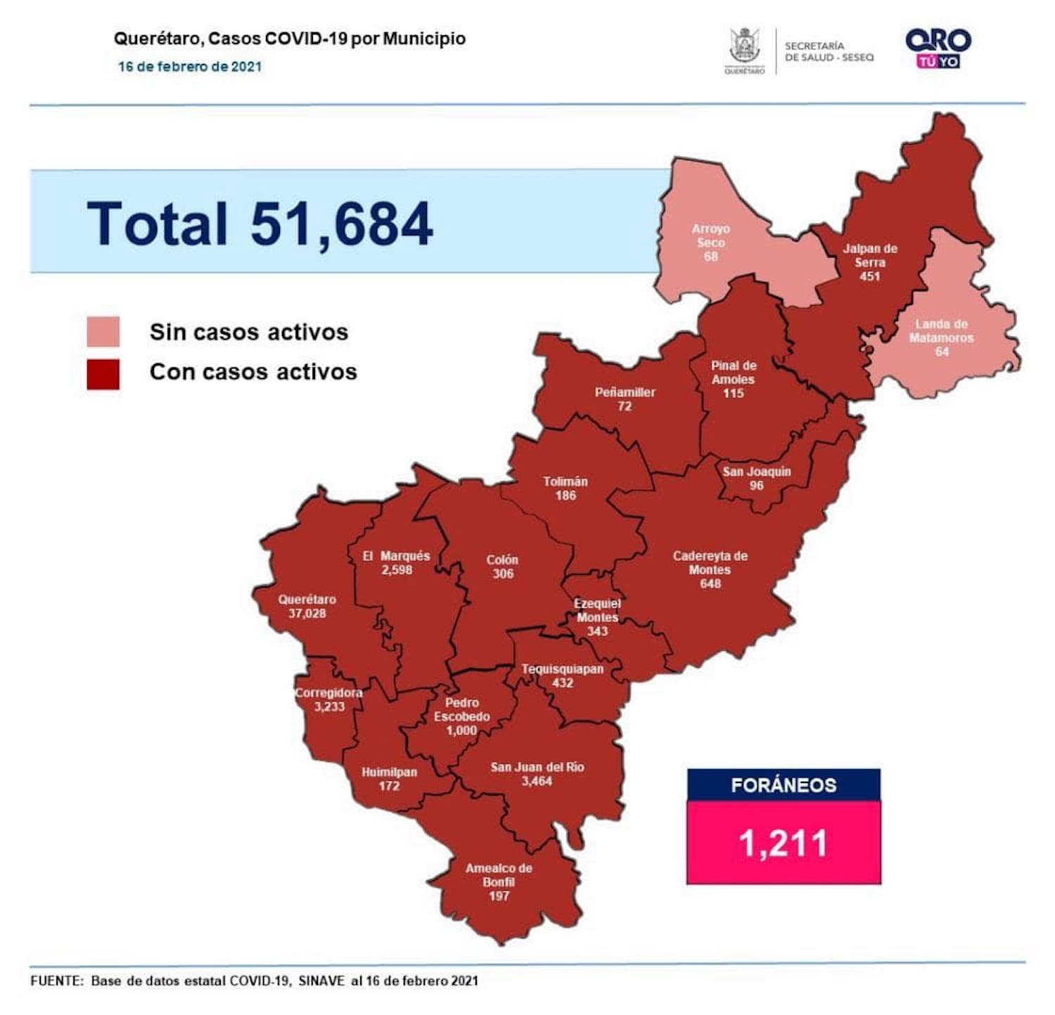 En la entidad se tiene un registro acumulado de 51 mil 684 casos de Covid-19; 50% son mujeres y 50% son hombres.