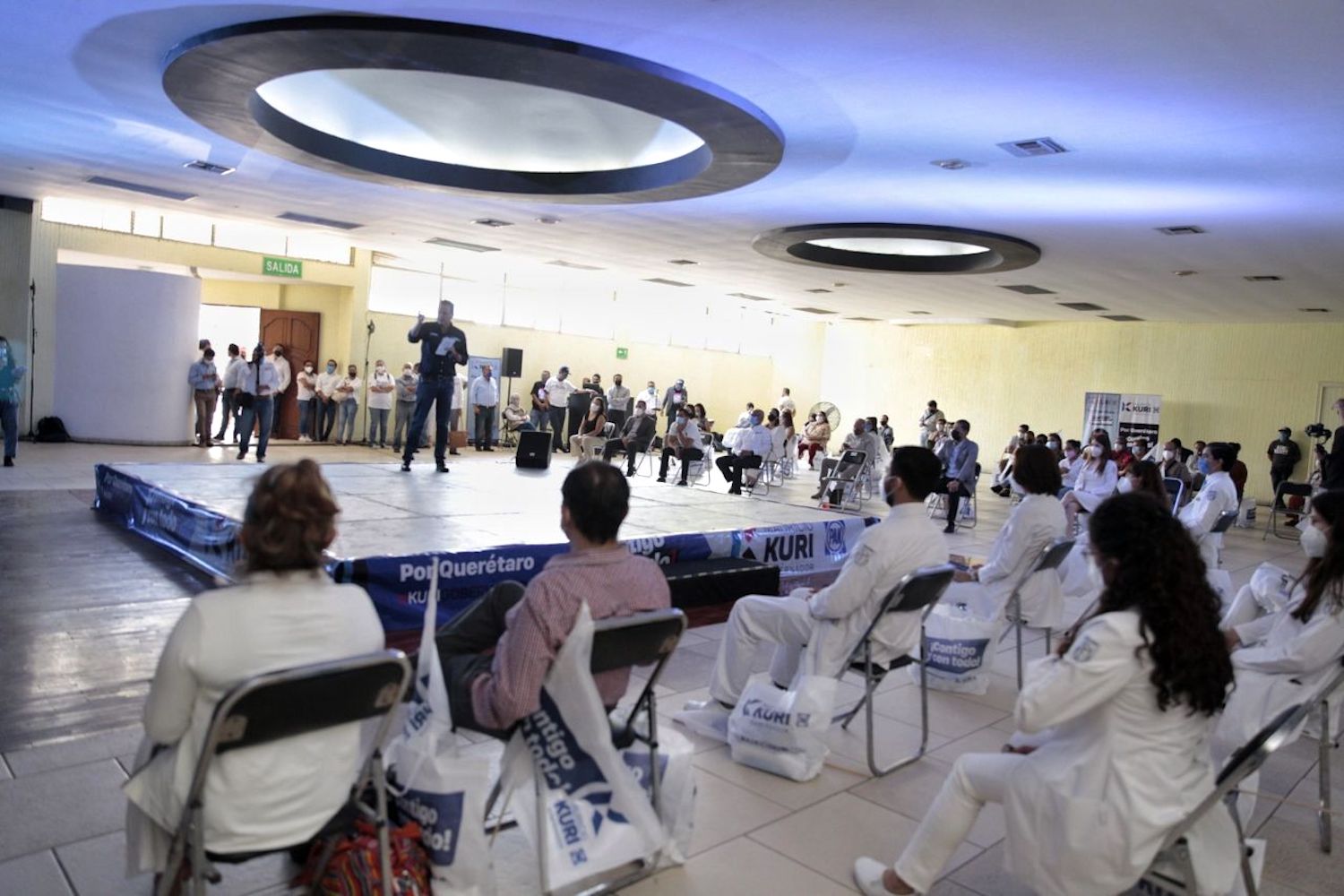 El candidato a la gubernatura de Querétaro, Mauricio Kuri, se comprometió a reforzar y dotar con todas las herramientas necesarias a las y los médicos del estado, así como a mejorar las condiciones laborales de las y los trabajadores de la salud; esto, con el firme propósito de lograr que la entidad sea ejemplo nacional en esta materia.
